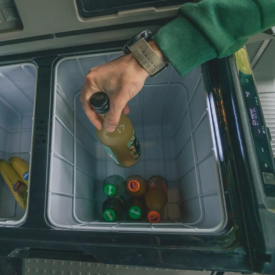 Die Arctic Frost Kompressor-Kühlboxen sind in 3 Größen erhältlich mit Nutzinhalten für 37, 45 und 54 Liter. Sie halten den Kühlinhalt in 2 separat regelbaren Temperaturzonen, die über ein LED-Display oder die kostenlose Outwell App gesteuert werden können, von +20 °C bis zu -20 °C. Um den Transport zu erleichtern, gibt es als Zubehör Haltegurte. Die Kühlboxen sind mit einem integrierten Flaschenöffner und einer Innenbeleuchtung ausgestattet. Ein interner, doppelter Drahtkorb und ein Schneidebrett werden mitgeliefert.