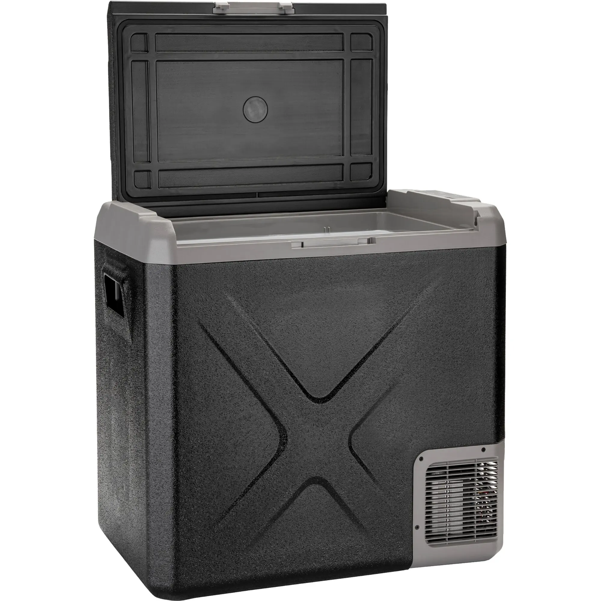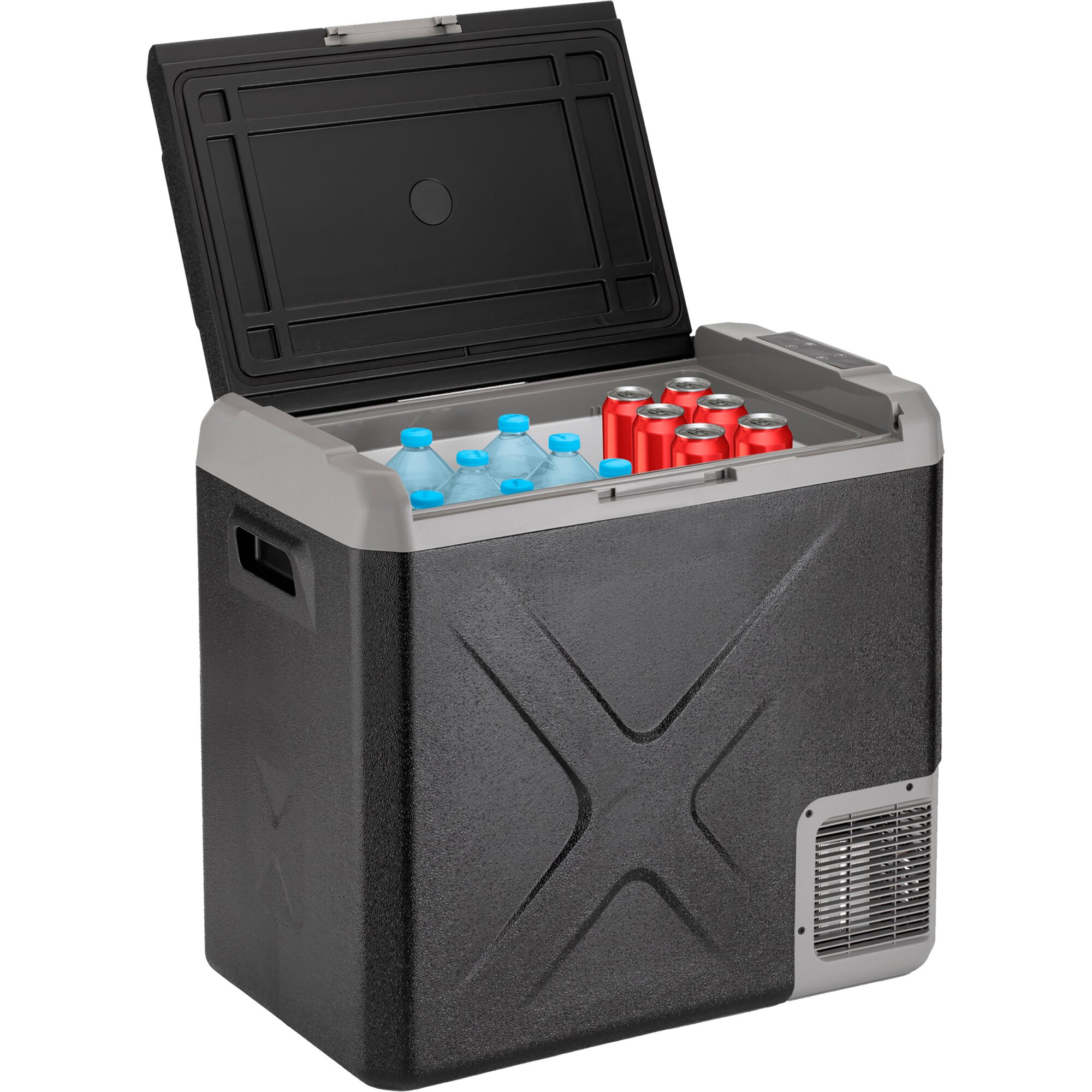 Tragbare Kompressor-Kühlbox mit einem einzelnem Kühlfach, die „Single Zone“. Modernes und kompaktes Design. Ausgestattet mit einem robusten, stoßfesten Kunststoffgehäuse mit hoher Isolierkapazität und einer digitalen Anzeige zur Temperaturkontrolle.