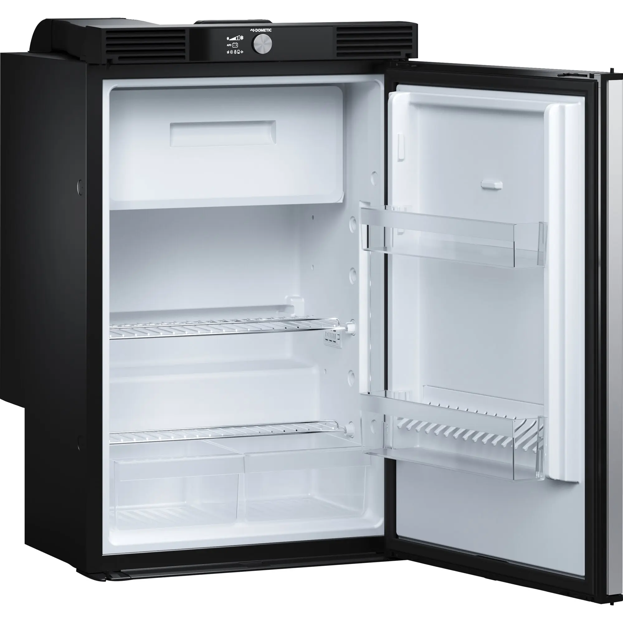 Die Kühlschränke der 10er Serie sind mit einem innovativen Feature ausgestattet, das stets auf optimale Platzausnutzung bedachte Wohnmobil- und Caravanbesitzer sehr freuen dürfte: Dank patentiertem Türanschlag kann ihre Tür beidseitig, also links oder rechts geöffnet werden. Bestechend ist das Äußere, das durch die eleganten Aluminium-Türgriffe über die gesamte Kühlschrankhöhe geprägt wird.
