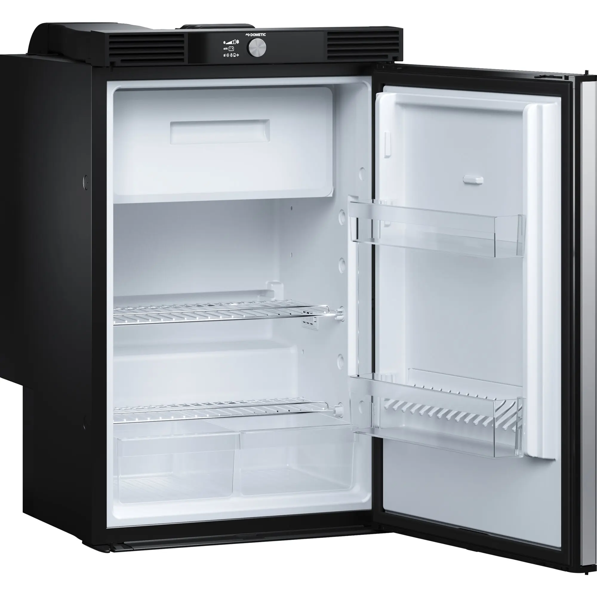 Die Kühlschränke der 10er Serie sind mit einem innovativen Feature ausgestattet, das stets auf optimale Platzausnutzung bedachte Wohnmobil- und Caravanbesitzer sehr freuen dürfte: Dank patentiertem Türanschlag kann ihre Tür beidseitig, also links oder rechts geöffnet werden. Bestechend ist das Äußere, das durch die eleganten Aluminium-Türgriffe über die gesamte Kühlschrankhöhe geprägt wird.