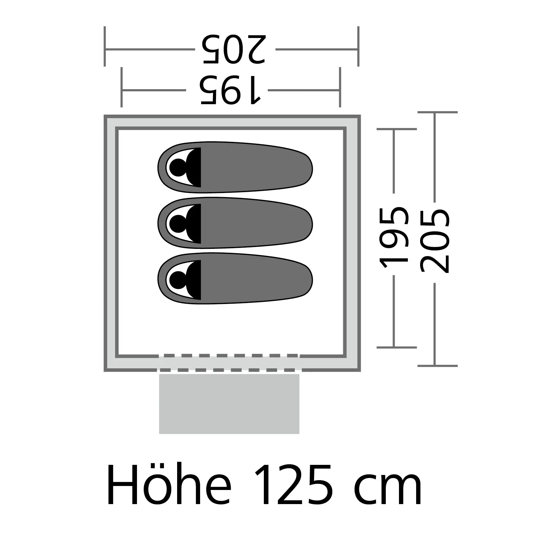 Material: Polyester 185T (atmungsaktiv), Boden: 100 % Polyethylen