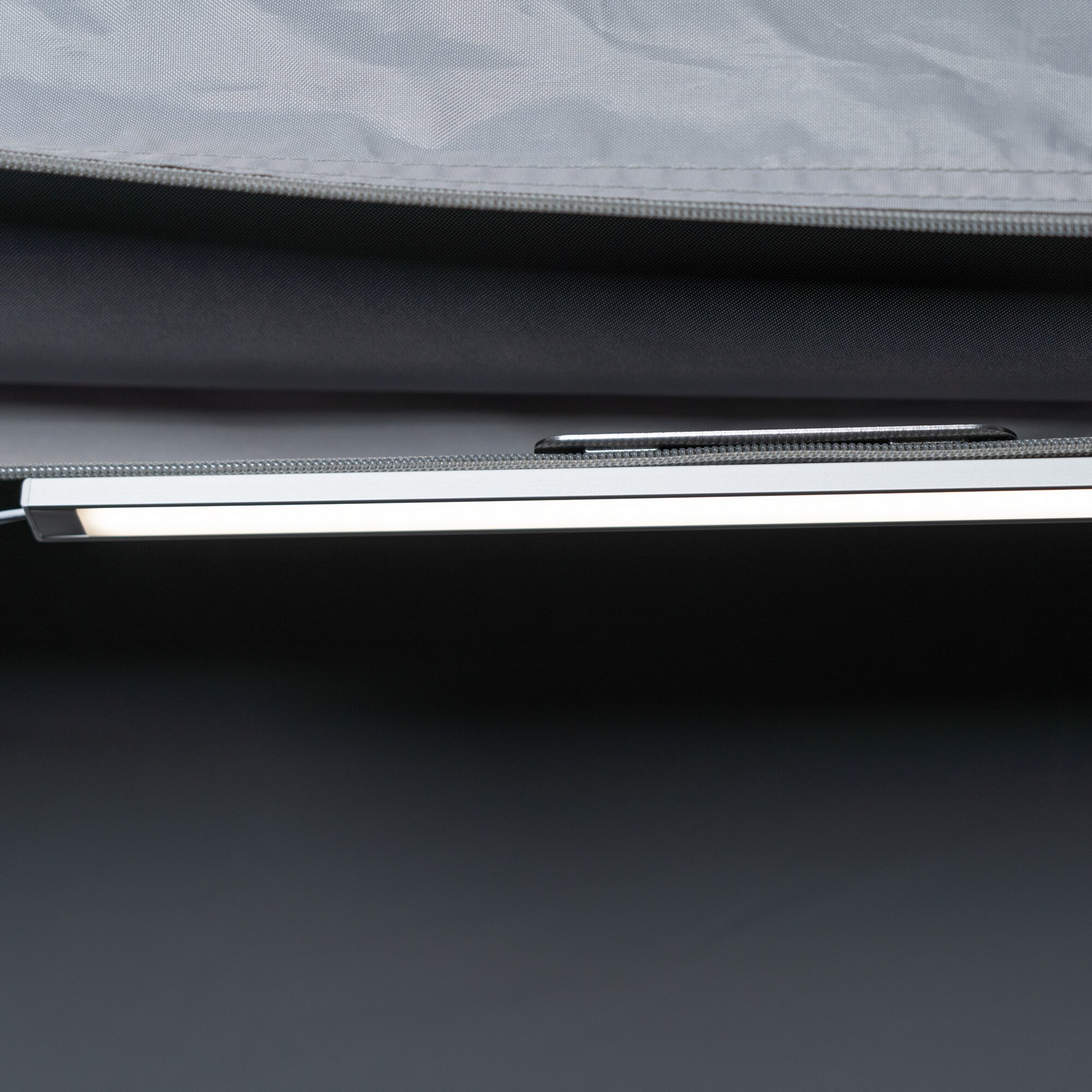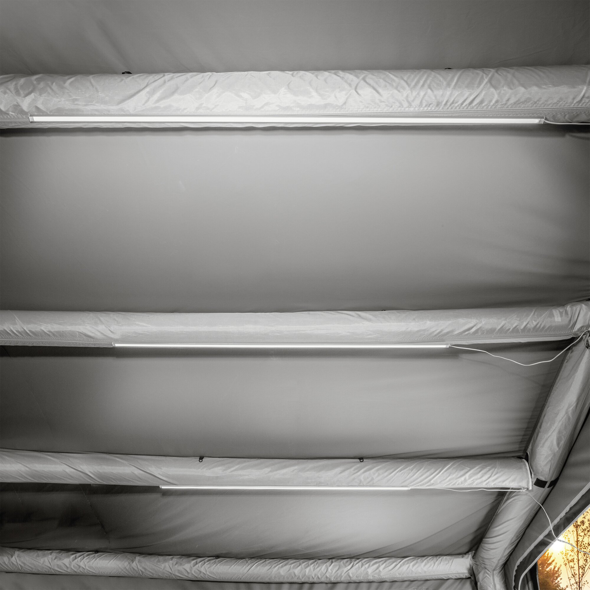 Das Dimatec LED-Lichtleisten-Set sorgt für optimale Be-/Ausleuchtung in Ihrem Vorzelt. Mit 230 V Spannung und einer praktischen Fernbedienung für Ein- und Ausschalten sowie Dimmfunktion haben Sie volle Kontrolle über die Helligkeit. Die drei 120 cm langen LED-Leisten sind auch für Vorzelte mit Luftgestänge konzipiert und lassen sich einfach anbringen. Robust und leistungsstark, schaffen sie ein angenehmes Licht für gemütliche Abende im Freien.