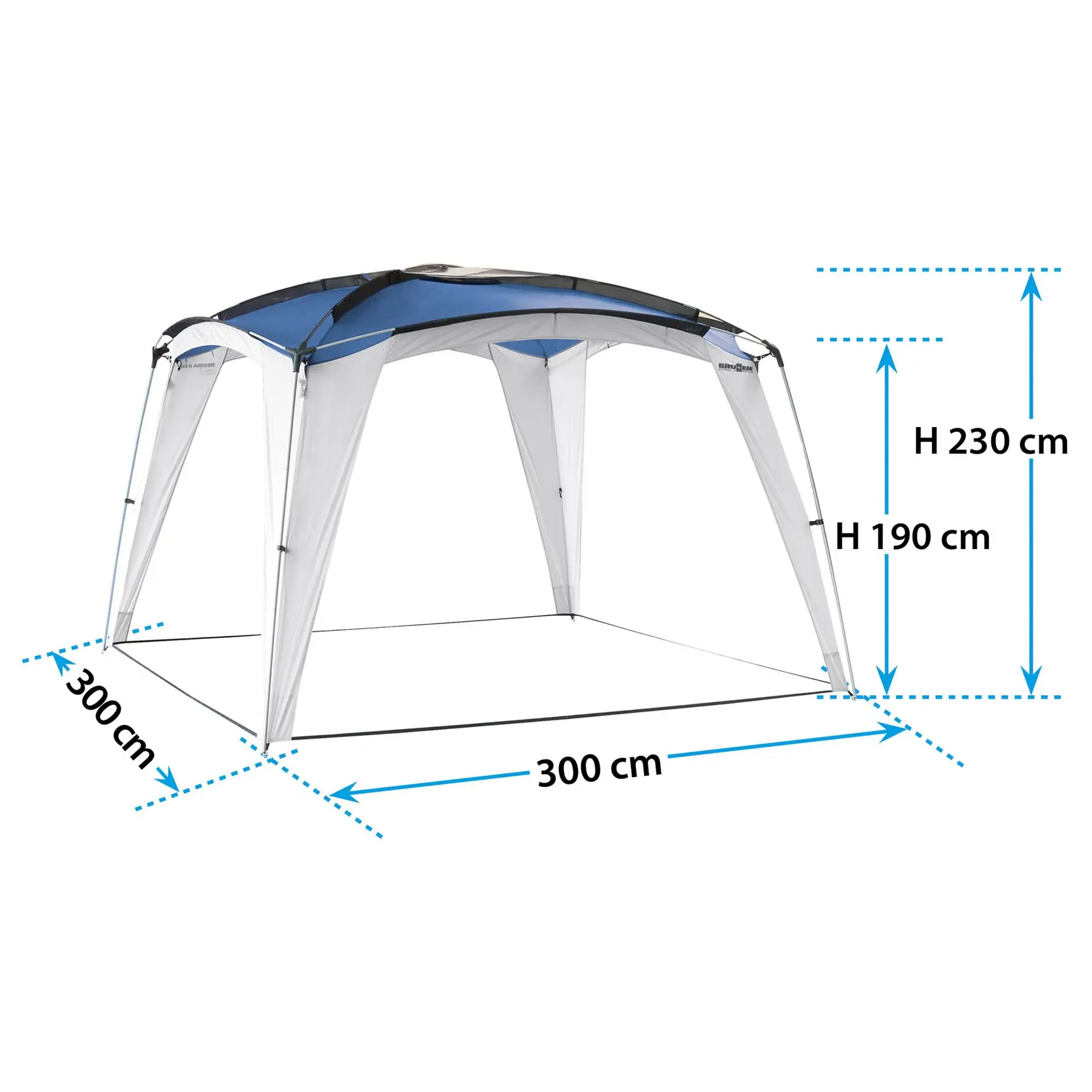 Pavillon mit außenliegendem Stahl- und Fiberglasgestänge. Einfacher, schneller Aufbau. Geringes Gewicht. Inklusive zwei abnehmbaren Seitenwänden und Packsack. Material: 68D Polyester PU. In 2 Größen/Farben. Gestänge: ø 13 mm GFK, ø 19 mm Stahl