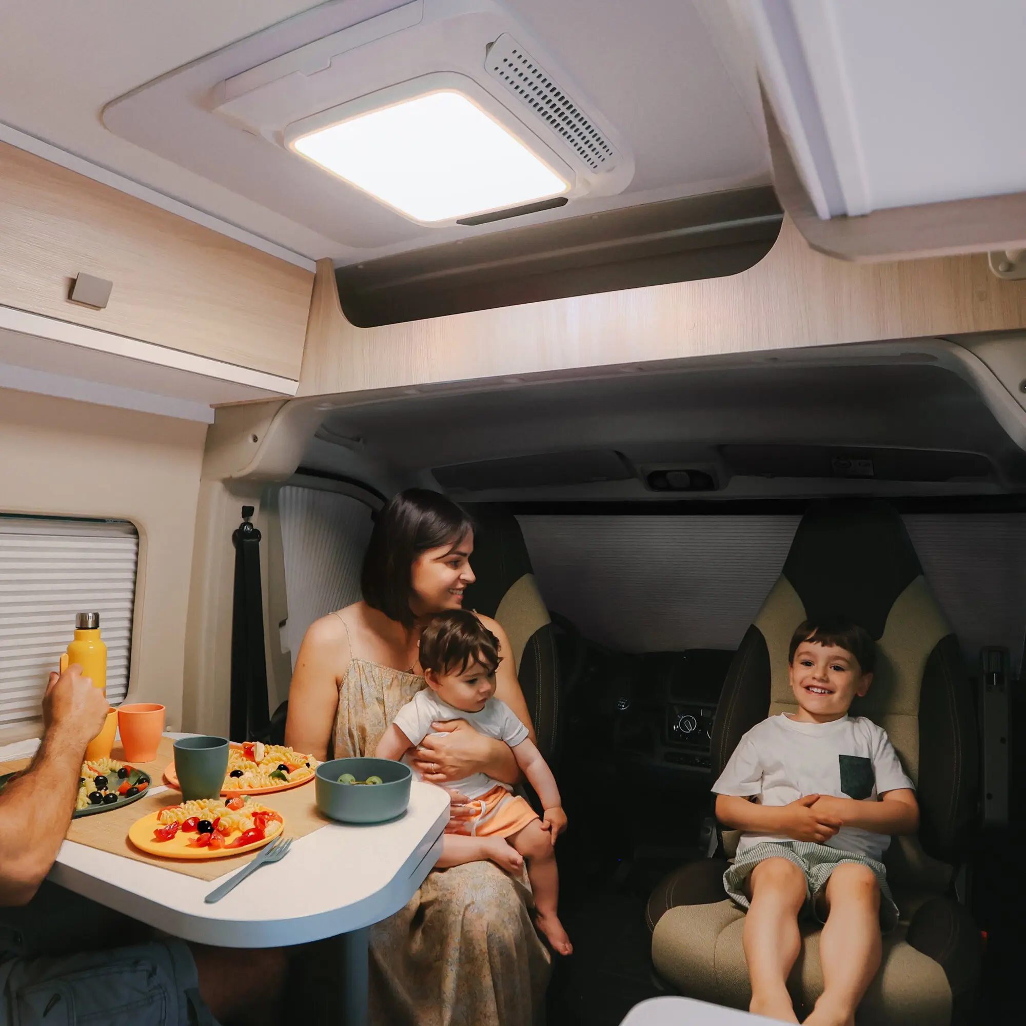 Die aufbereitete Luft wird vom Diffusor aus durch 2 Öffnungen im Fahrzeuginneren verteilt, wobei die Möglichkeit besteht, den Luftstrom mit Hilfe von manuell verstellbaren Deflektoren zu lenken.