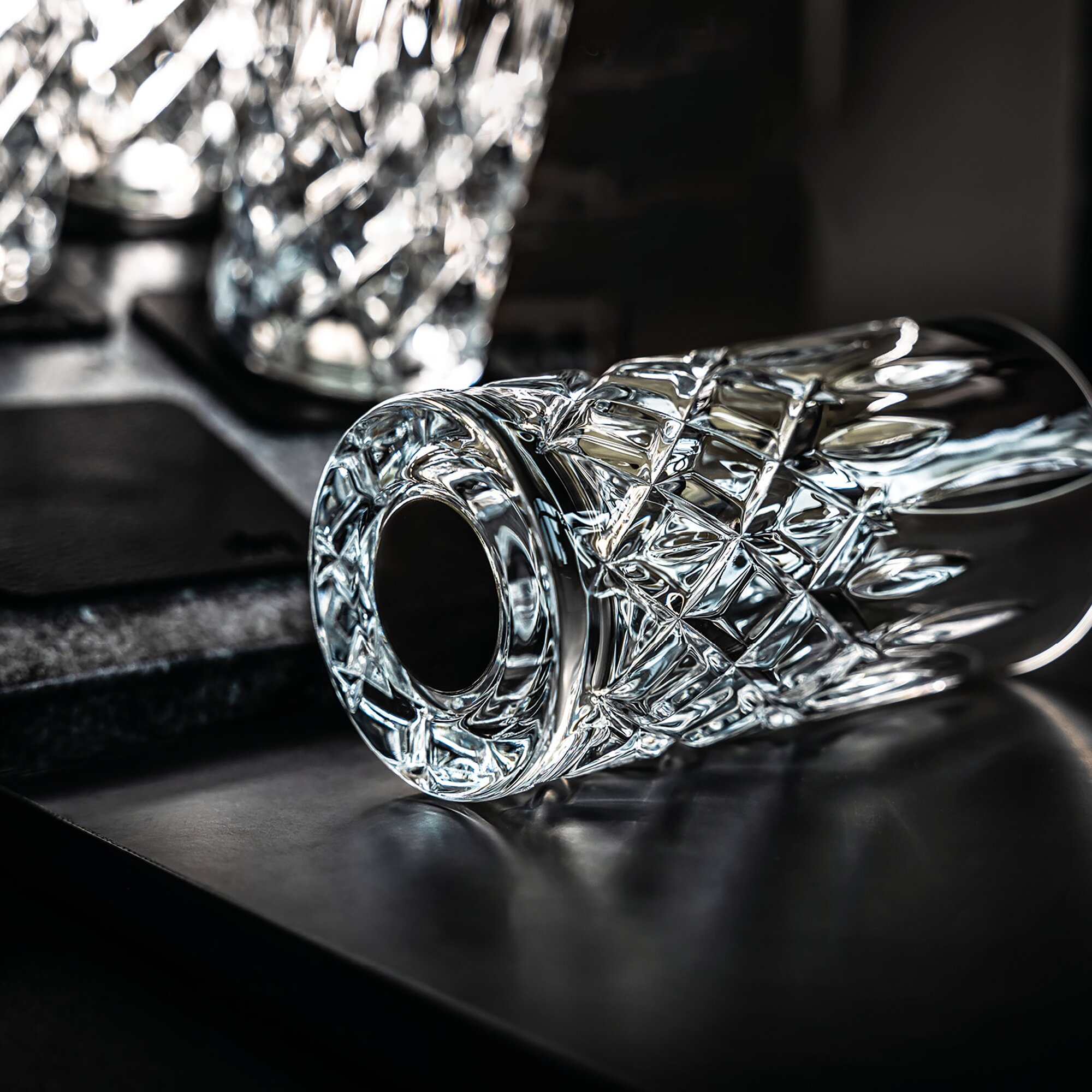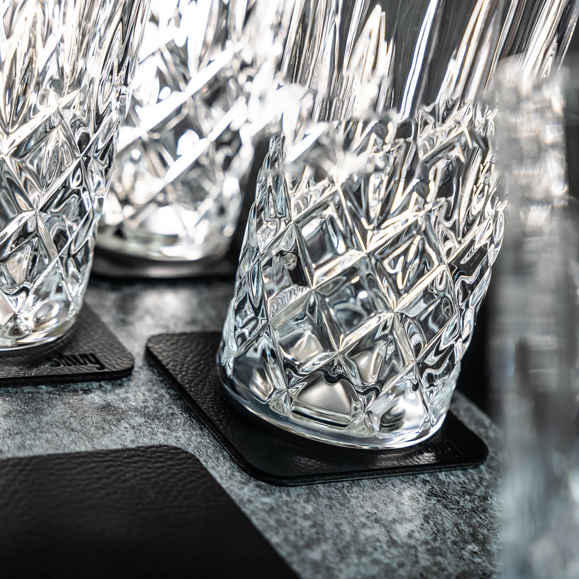 Hochwertige Kristallgläser mit integriertem Magnet. Endlich können Sie Echtgläser standfest verstauen und Ihre Getränke aus feinstem Glas genießen. Nicht spülmaschinengeeignet. Inkl. Metall-Nano-Gel-Pads.