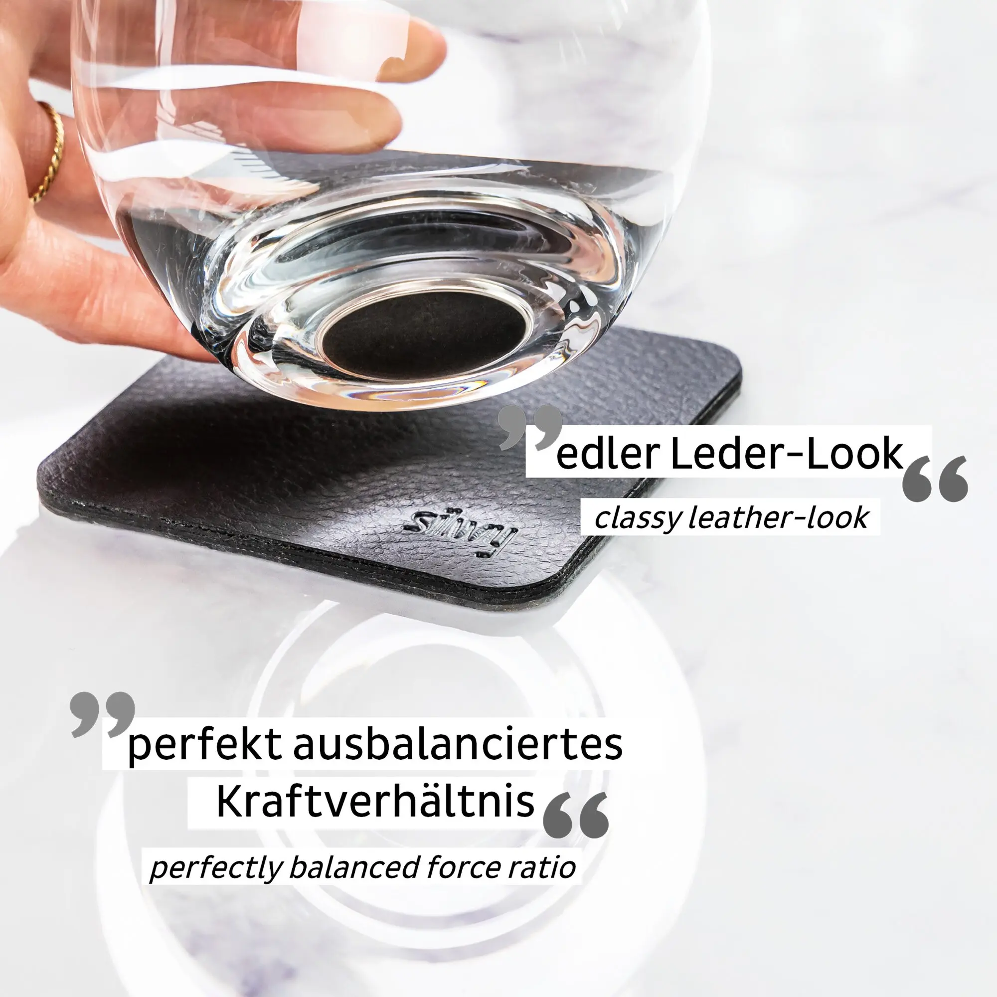 Hochwertige Kristallgläser mit integriertem Magnet. Endlich können Sie Echtgläser standfest verstauen und Ihre Getränke aus feinstem Glas genießen. Nicht spülmaschinengeeignet. Inkl. Metall-Nano-Gel-Pads.