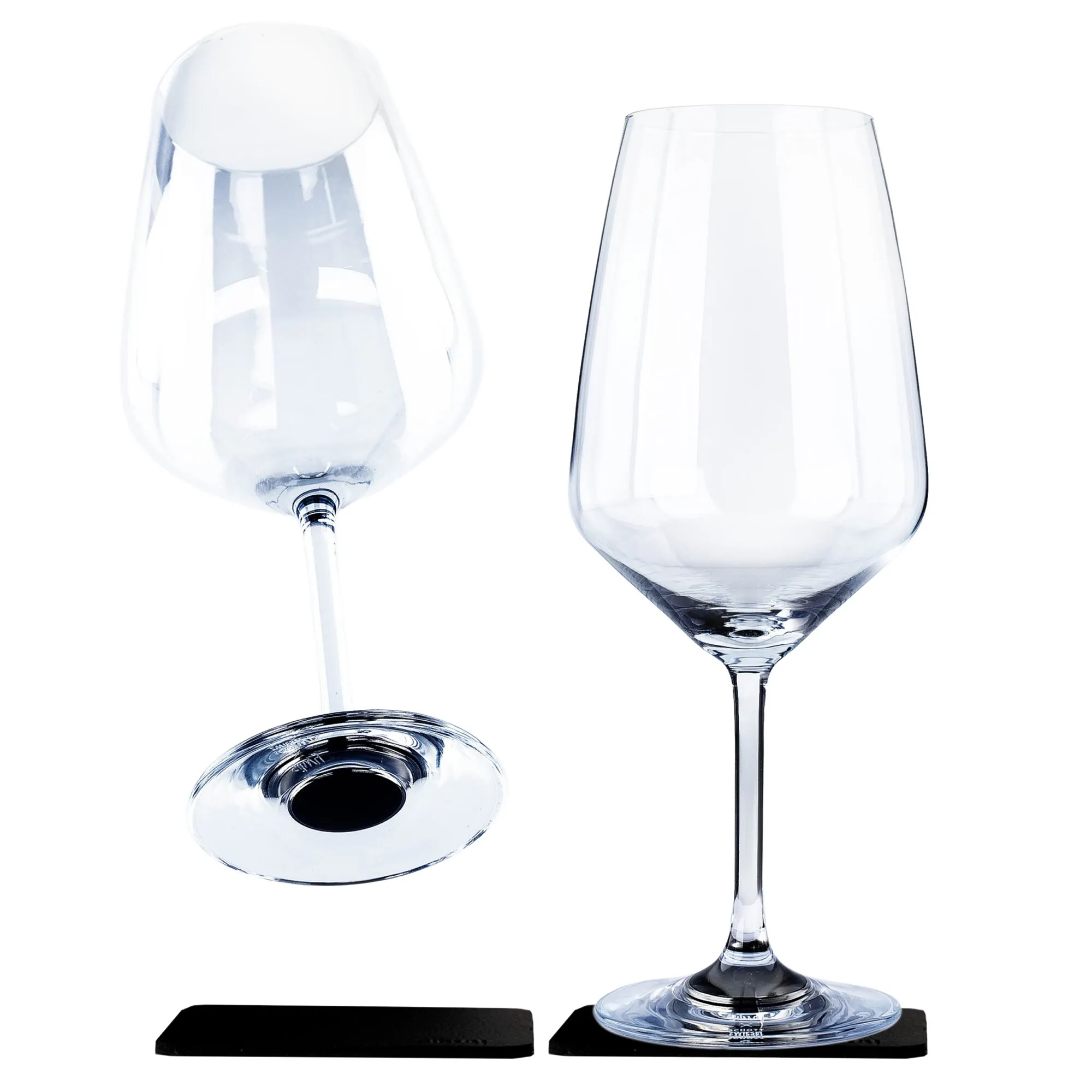 Hochwertige Kristallgläser mit integriertem Magnet. Endlich können Sie Echtgläser standfest verstauen und Ihre Getränke aus feinstem Glas genießen. Nicht spülmaschinengeeignet. Inkl. Metall-Nano-Gel-Pads.