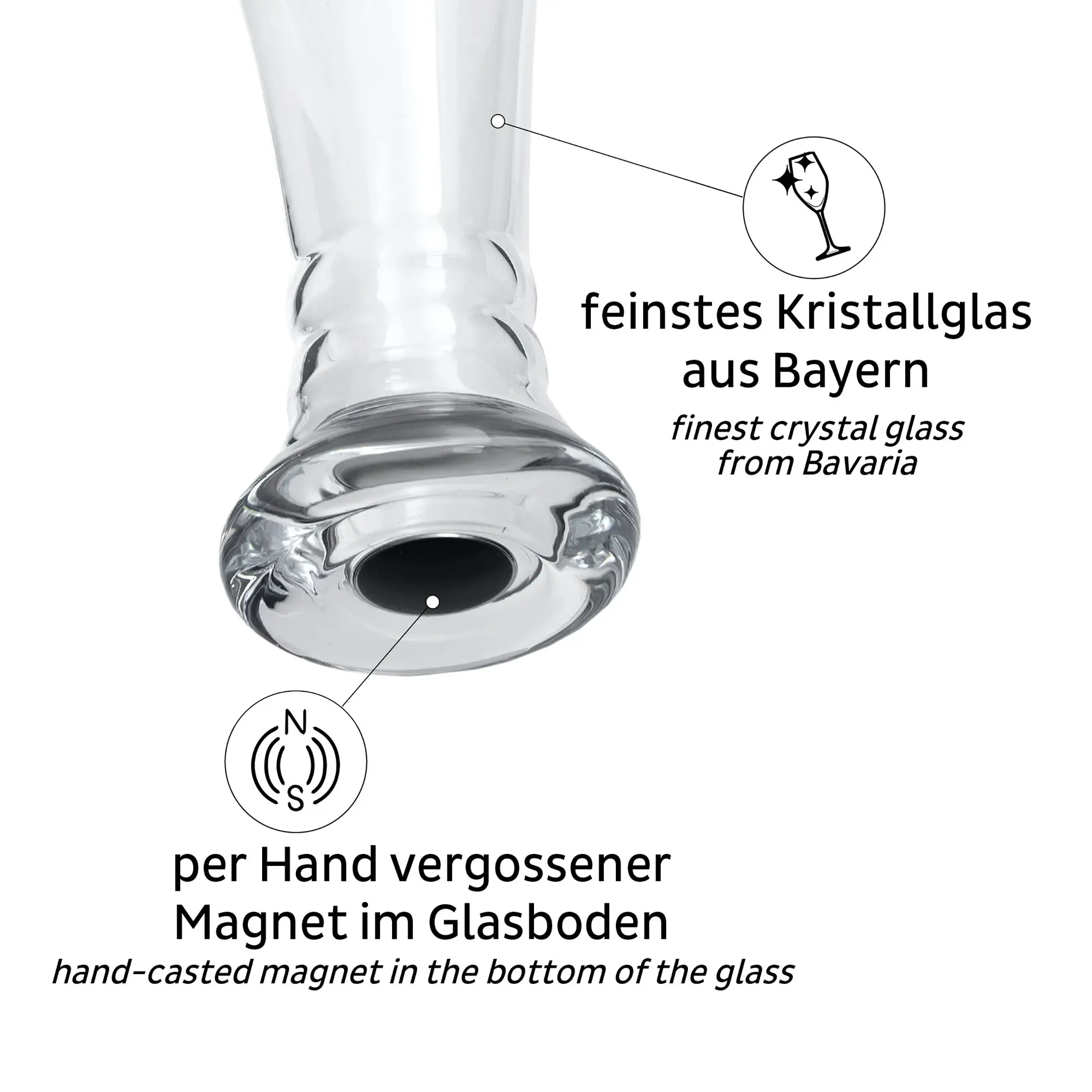 Hochwertige Kristallgläser mit integriertem Magnet. Endlich können Sie Echtgläser standfest verstauen und Ihre Getränke aus feinstem Glas genießen. Nicht spülmaschinengeeignet. Inkl. Metall-Nano-Gel-Pads.