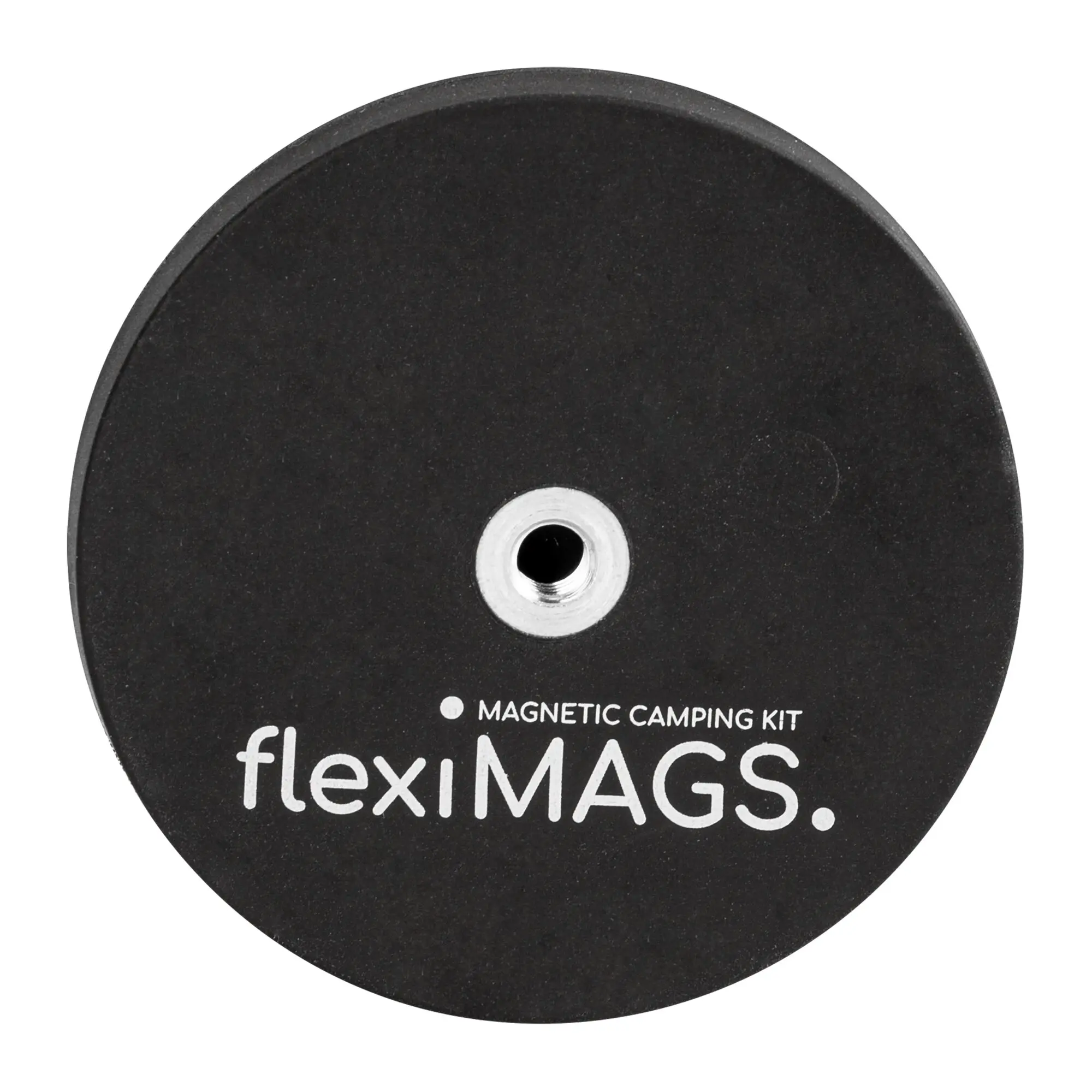 Gummierter Magnet in schwarz oder weiß. Durch das Innengewinde lässt sich der Magnet mit dem flexiMAGS Zubehör kombinieren und variabel einsetzen. Je nach Durchmesser besitzen die Magnete eine Haltekraft zwischen 3,8 und 25 kg.