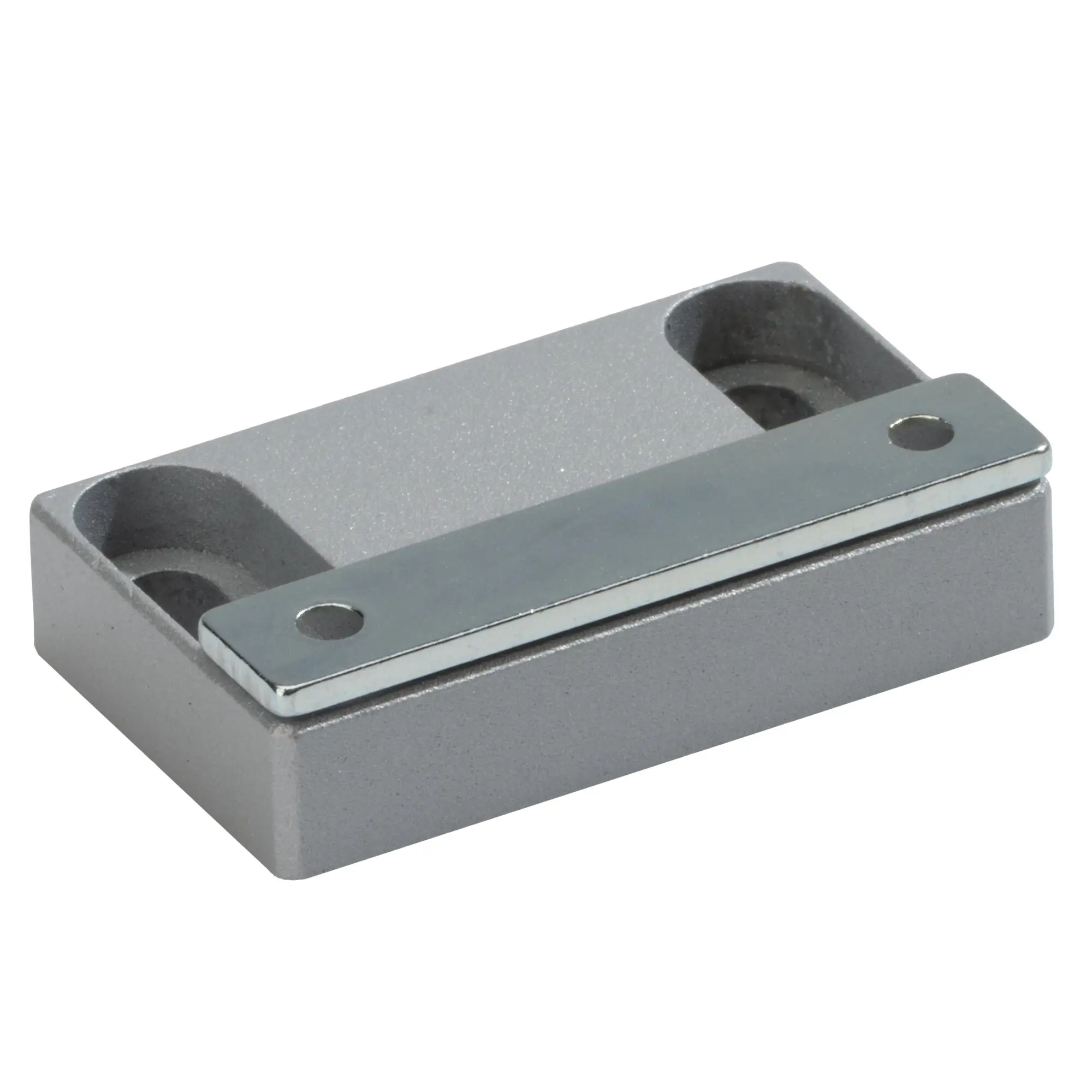 Die Magnetbeschläge zum Anschrauben können je nach Ausführung frontal oder seitlich genutzt werden. Mit zwei Schrauben lassen sie sich stabil und sicher montieren. Die breiten Ausführungen mit jeweils zwei Langlöchern ermöglichen eine präzise Justierung der Position.