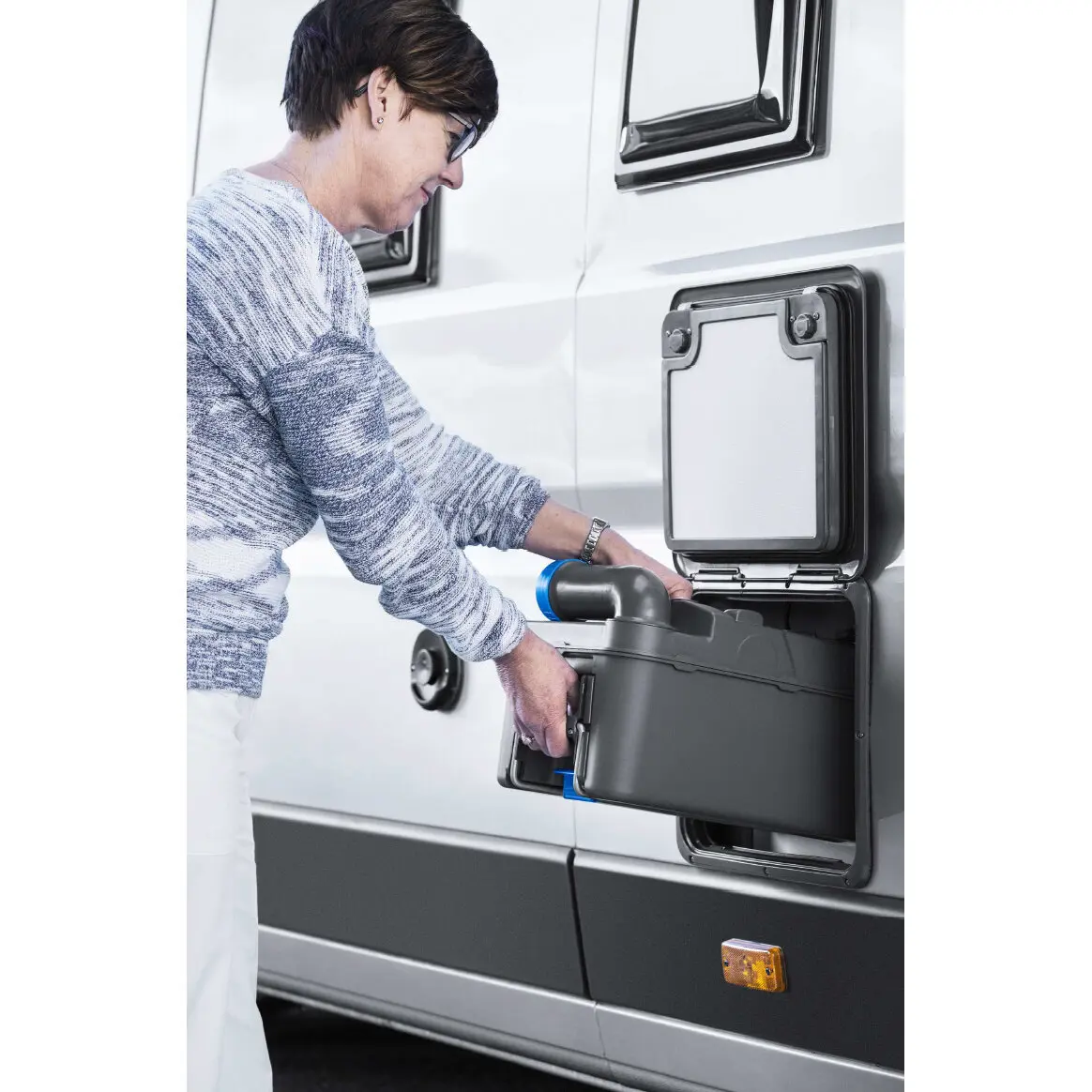 Knopf mit Magnet, um die Klappe offen zu halten, während du den Fäkalientank entnimmst. Ideal für Fahrzeuge mit Seitenwänden aus Stahlblech (z. B. Kastenwagen). Außerdem ist der Knopf mit einer Weichgummischicht versehen, um Kratzer zu vermeiden. Nur für Serviceklappe Modell 3.