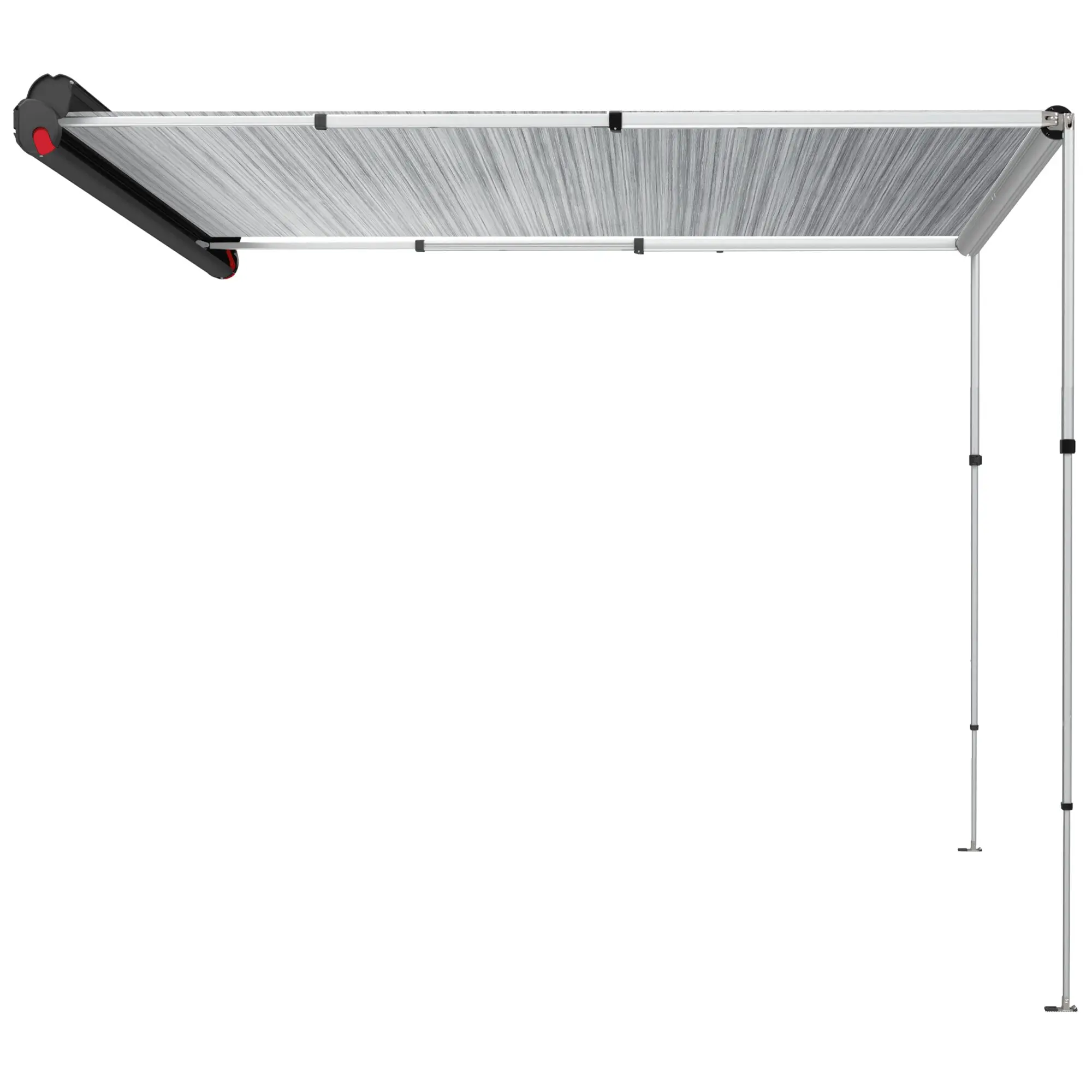 Überarbeitete Version der F35pro. Leichte, manuelle Markise für Campingbusse und kompakte Fahrzeuge. Flexible Montage. Kompaktes Design, ausgestattet mit Druckknopf und Federmechanismus für schnelles Öffnen und korrektes Schließen.