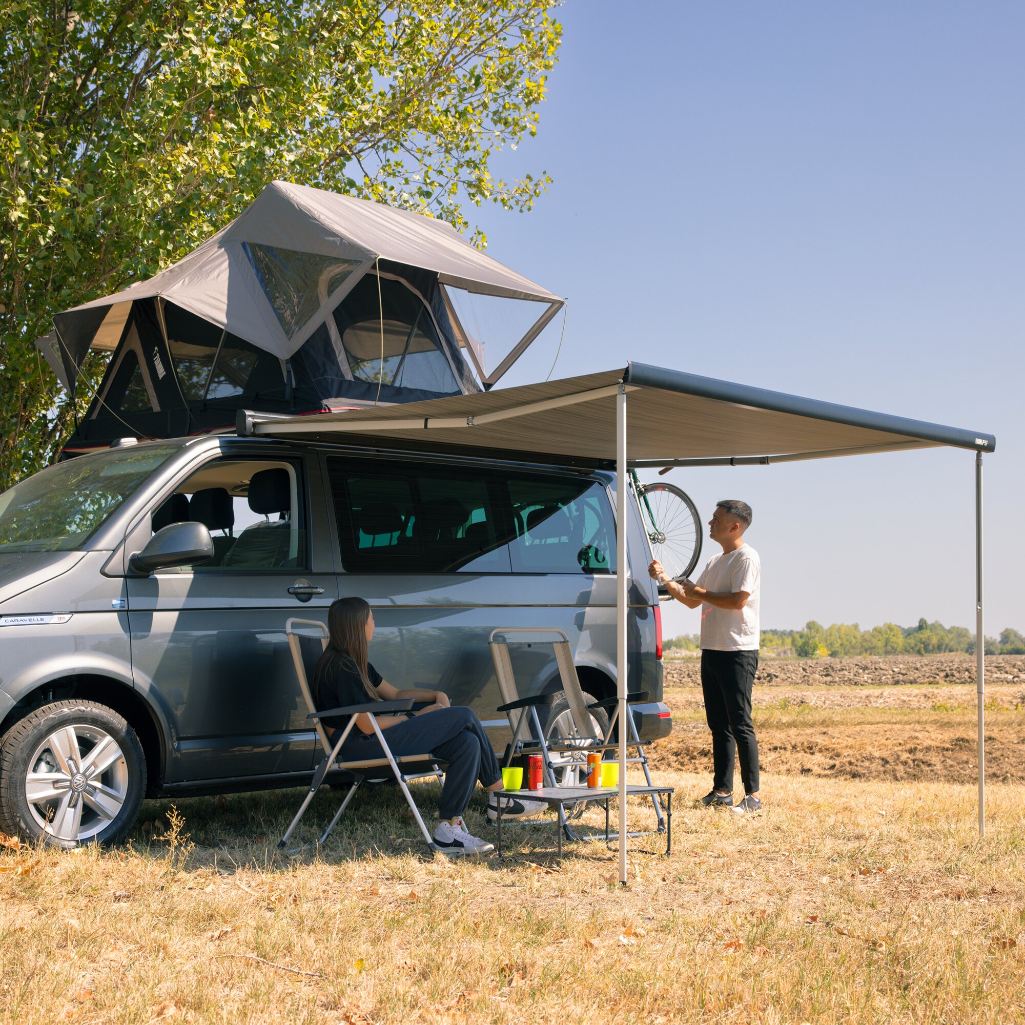 Wandmarkise mit Magnetkurbel. Spezielle Version entwickelt für den Campingbus (auch mit Aufstelldach). Kompakt und mit innovativem Design, das sich harmonisch an die Optik des Fahrzeugs anpasst.