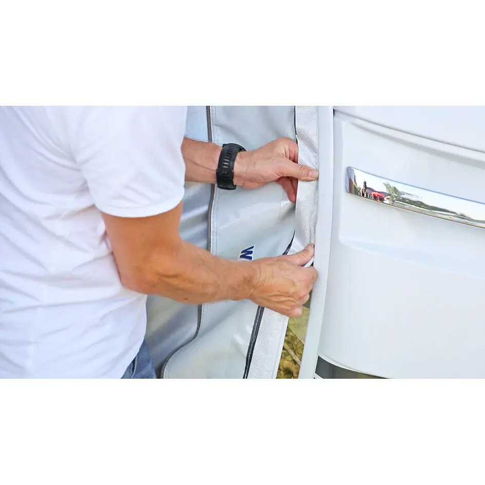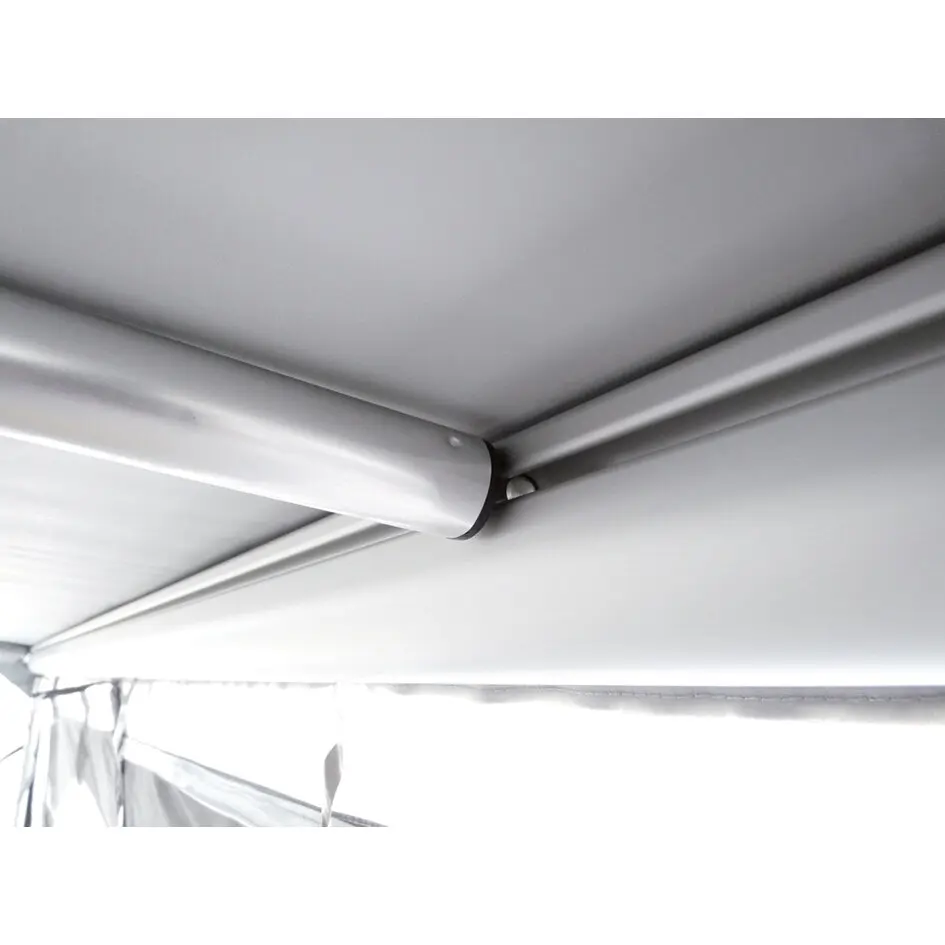 Genial, einfach, leicht zu montieren – das sind die Merkmale, die die aktuelle Generation dieser Markise aus dem Hause Wigo auszeichnen. Sie überzeugt durch ihre einfache Montage in der Kederschiene, ist schnell ausgerollt und eingezogen. Der einfache Aufbau des Aluminium-Gestänges wird durch ein innovatives Arretierungssystem ermöglicht. Dach- und Aufstellstangen sind mit Bolzen versehen, die in die Führungsleiste der Markisenwelle eingeführt werden. Durch einfaches Drehen werden die Stangen in ihrer Position fixiert und sorgen so für mehr Stabilität. In ihrem Sack zusammengerollt ist die Markise optimal geschützt, transportabel und kann auch während der Fahrt am Fahrzeug verbleiben. Markisentuch und -sack sind aus hochreflektierender Klimatisierungsdachware mit Easy-Clean-Schmutzbremse gefertigt. Im Lieferumfang enthalten ist außerdem umfangreiches Abspannmaterial sowie 5 Dach- und 3 Aufstellstangen aus Aluminium mit Power-Grip. Rolli Premium bietet hohe Stabilität und Qualität für eine lange Lebensdauer.