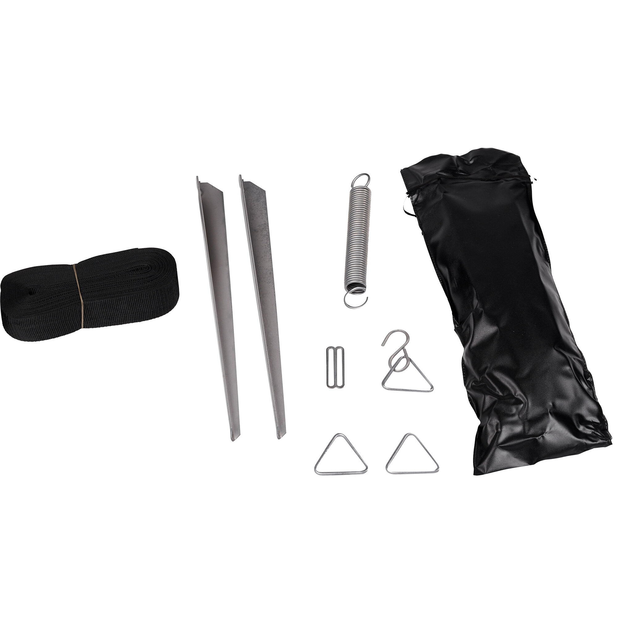 Der Abspanngurt wird über die Gelenkarme gelegt und seitlich verspannt; er passt für alle Markisen.