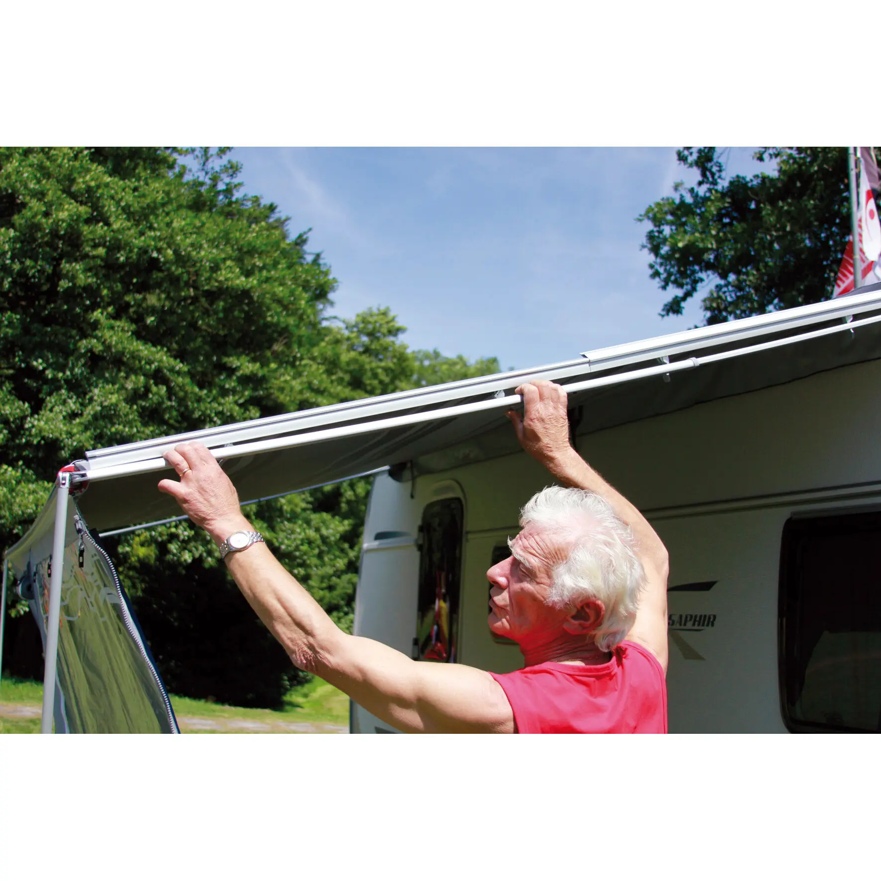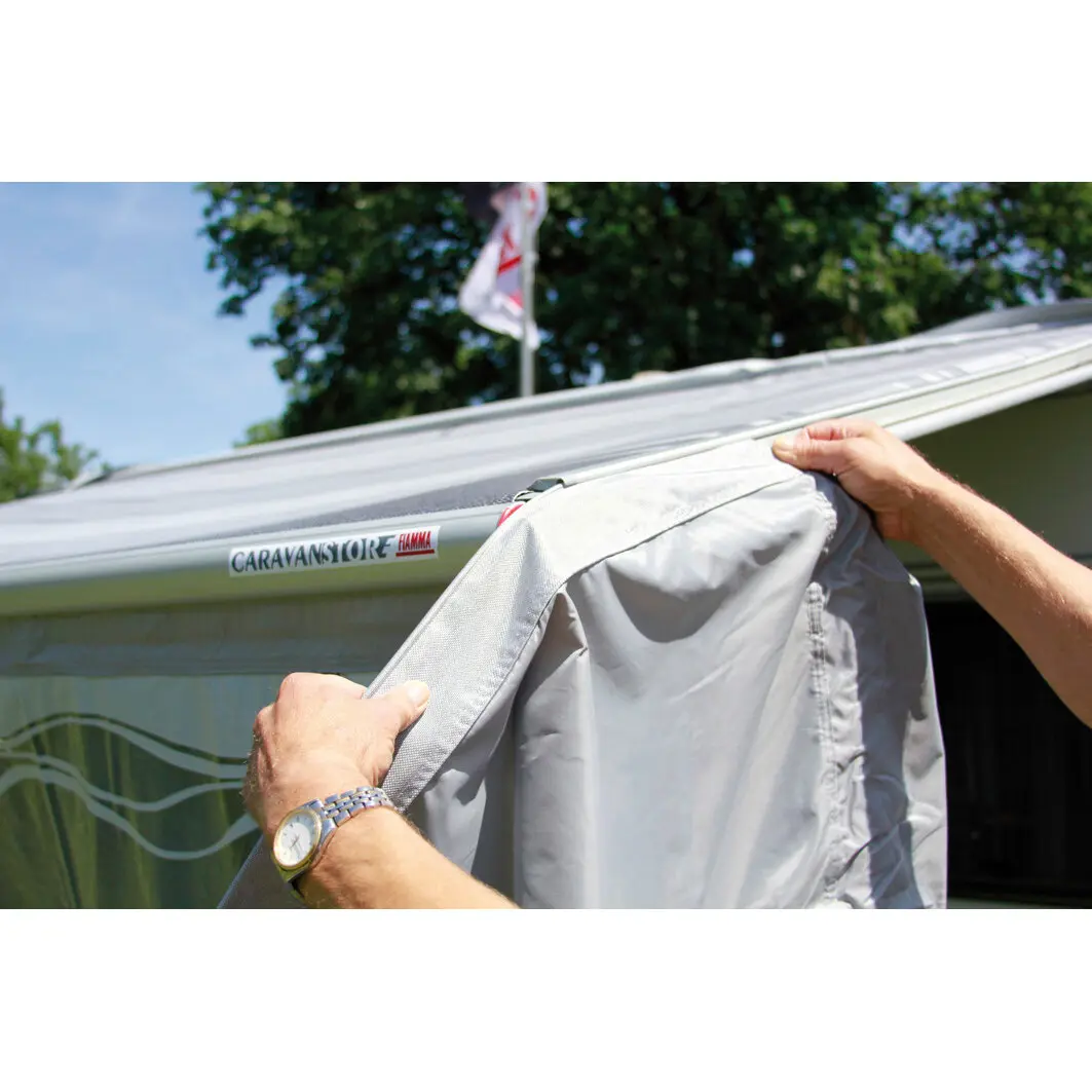 Die kompakte und leichte Privacy Lösung für die CaravanStore und F35pro Markise. Einfache und schnelle Anbringung. Die Seitenfenster, welche geöffnet werden können, sind mit Moskitonetzen versehen. Das Vorderteil mit aufrollbarem Fenster und Moskitonetz wird einfach in die Kederschiene der Rolle eingezogen und mittels Reißverschlüssen ganz einfach mit den Seitenteilen verbunden.