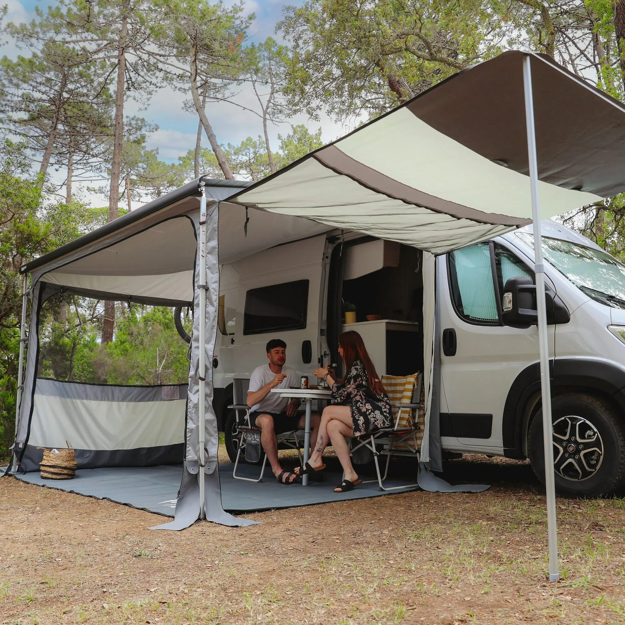 - Seitenwände mit aufrollbarer Verdunkelung und Moskitonetz