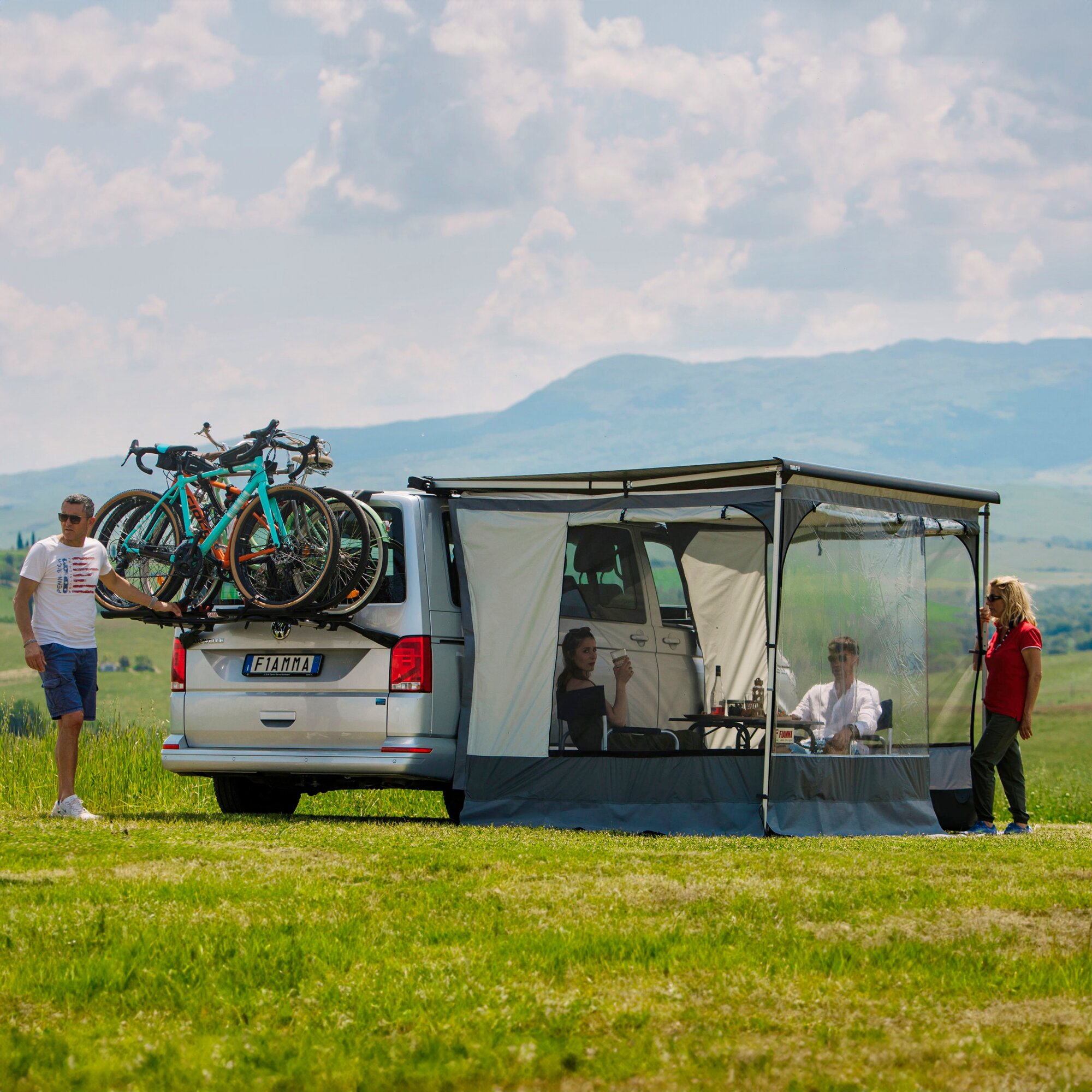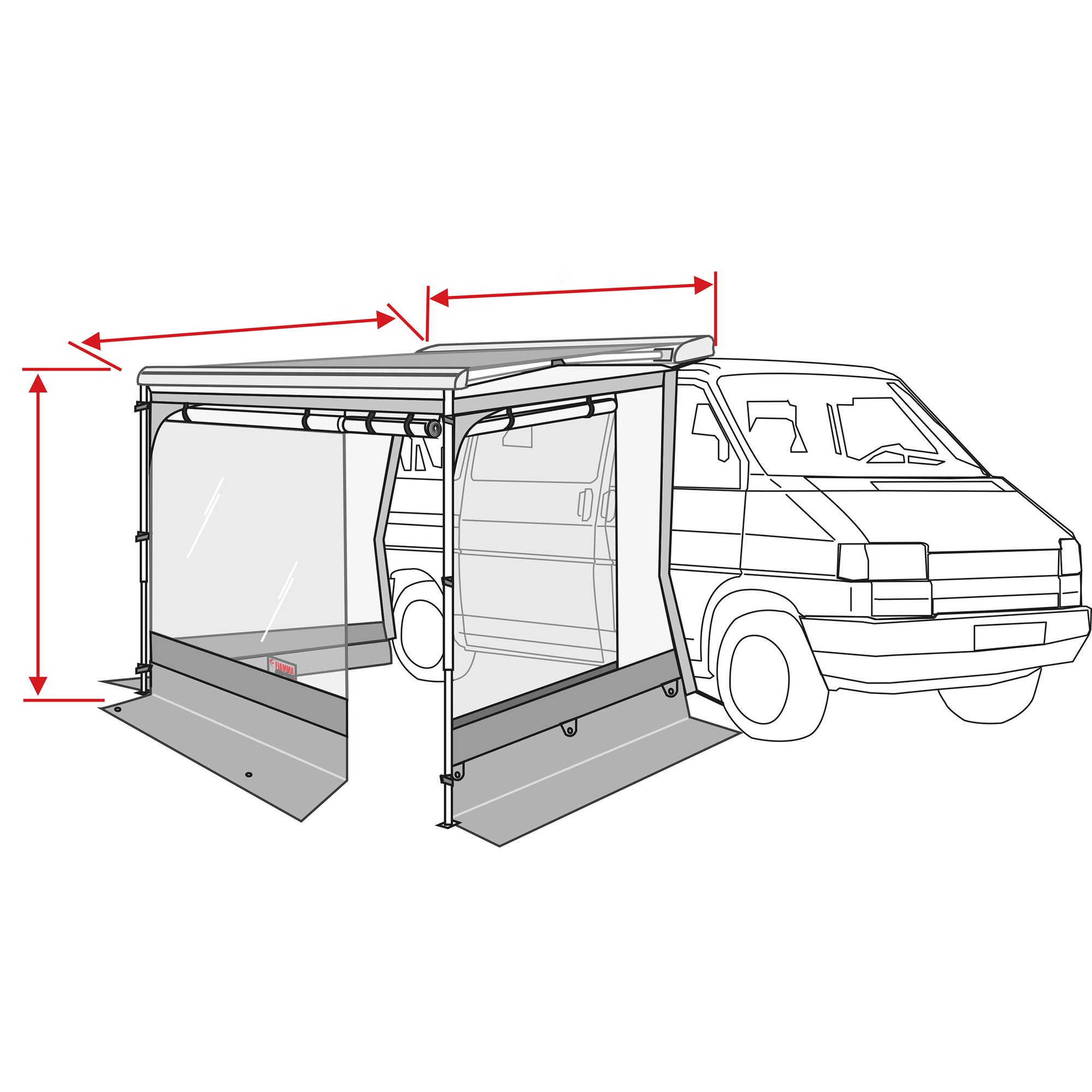 Vorzelt für F40van und F43van. Ohne Gestänge, schneller Aufbau und für jene interessant, die ständig von Ort zu Ort reisen.
