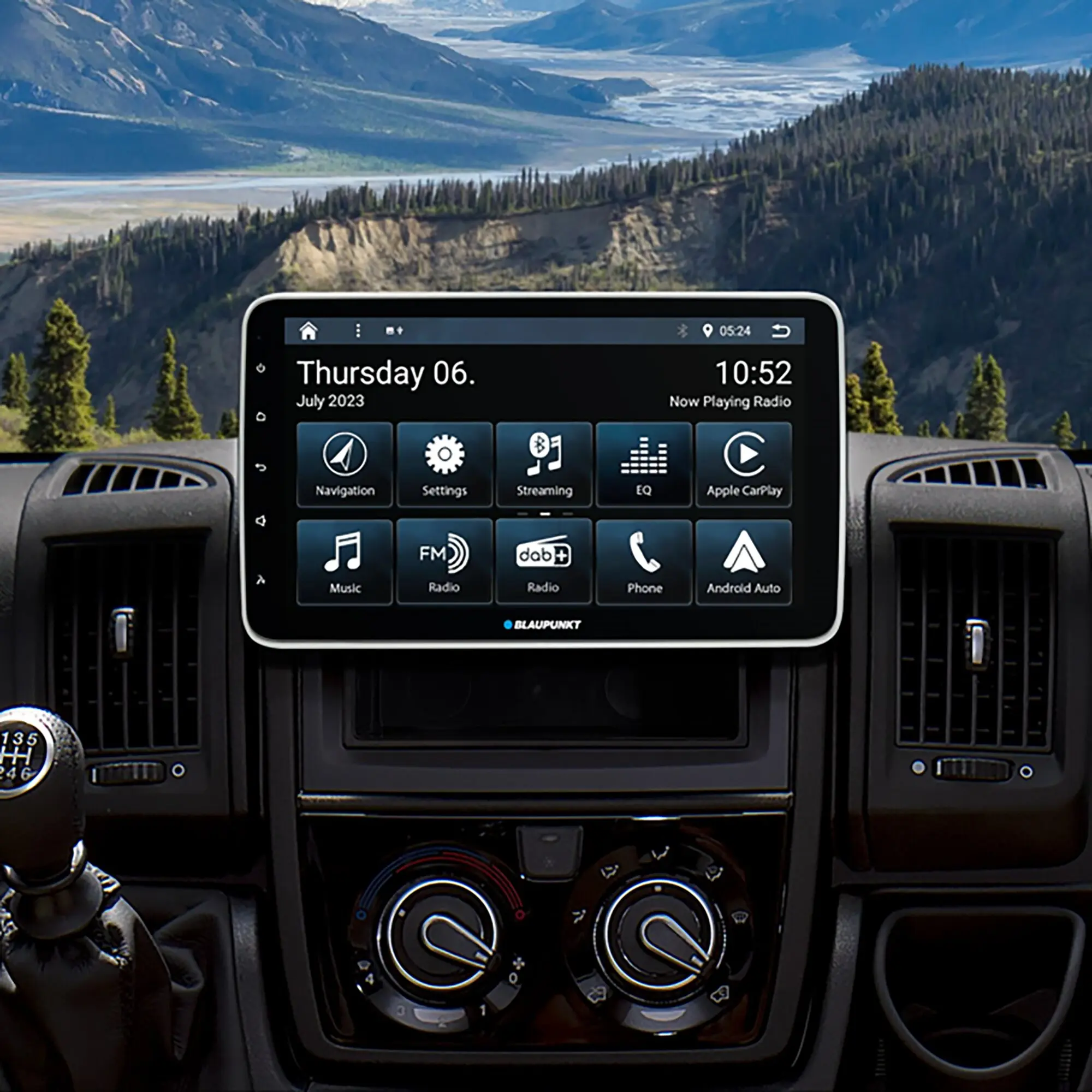 Dieses 1-DIN Multimedia Navigationssystem von Blaupunkt bietet eine Welt voller Innovation, Komfort und einer Vielfalt an Funktionen. Das große 10,1“ HD TFT-Touch-Display sorgt für gestochen scharfe Bilder und eine immersive Benutzererfahrung. Das kapazitive Touch Panel ermöglicht eine mühelose Navigation, während der Split Screen-Modus mehrere Funktionen gleichzeitig anzeigen kann. Das integrierte GPS-Navigationssystem mit 3 Jahren kostenfreien Updates bringt einen sicher ans Ziel. Das Hamburg 948 besticht durch kabellose Freiheit mit der Apple CarPlay- und Android Auto-Anbindung. Die Phone Link-Funktion ermöglicht eine nahtlose Integration des Smartphones.
