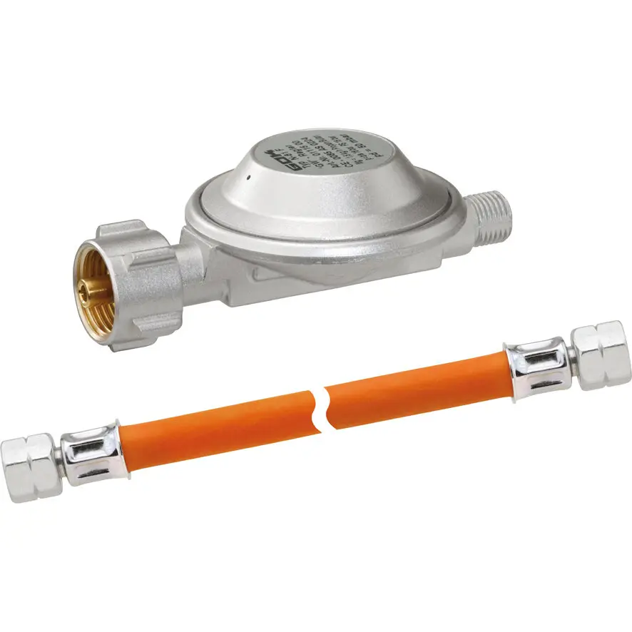 Enthält einen Niederdruckregler Typ EN61 ohne Manometer; 1,5 kg/h, 50 mbar und eine Kunststoff-Schlauchleitung Mitteldruck 400 mm bis -20 °C, beidseitig mit G ¼ Linksgewinde-Überwurfmutter sowie ein MiniTool.