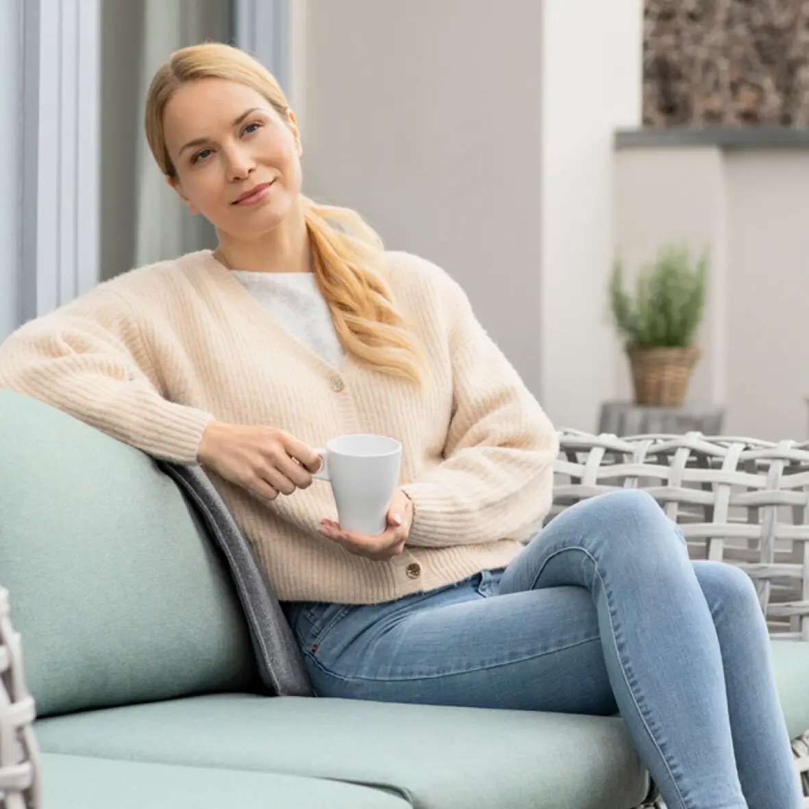 Genießen Sie Wärme to go. Dank modularem Druckknopfsystem können Sie zwei Kissen miteinander kombinieren. Der Controller ist gleichzeitig auch der Tragegriff. Hergestellt aus strapazierfähigem Material, das schmutz- und feuchtigkeitsbeständig ist. Perfekt für den Gebrauch im Innen- und Außenbereich.