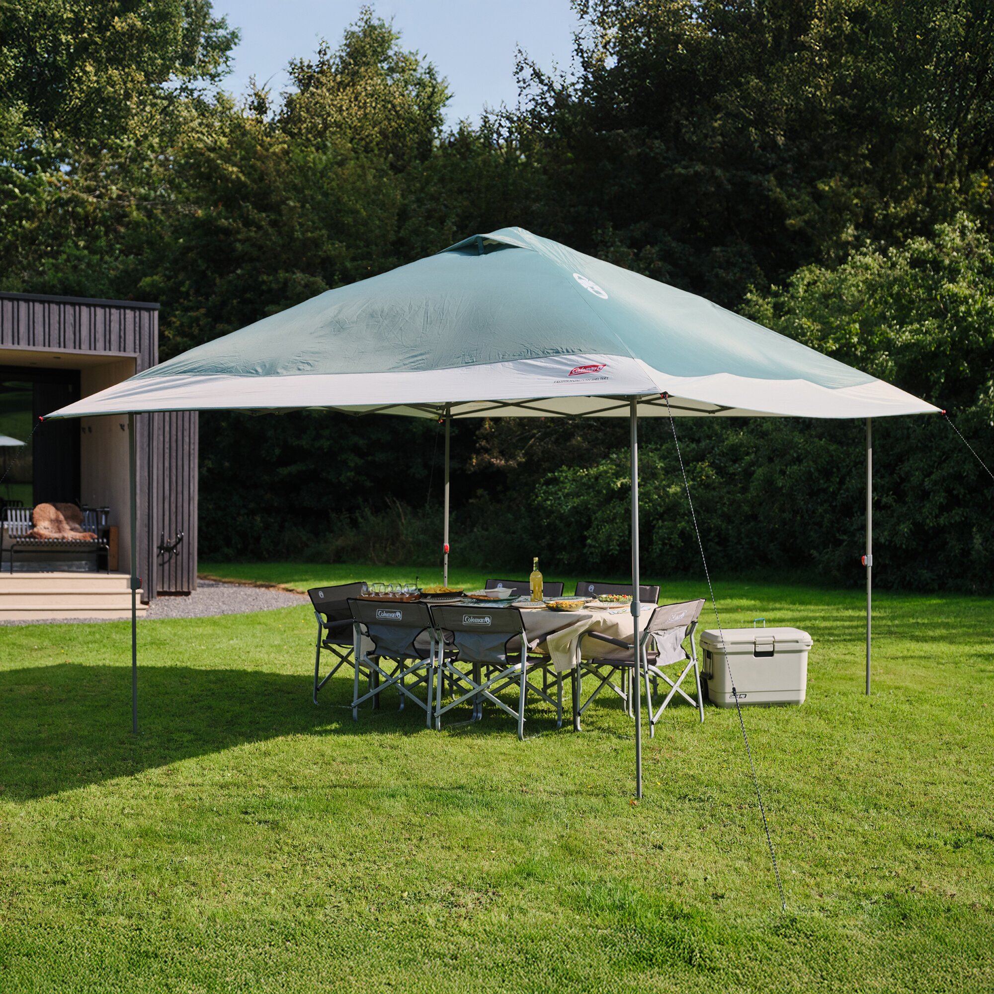 Ideal für Camping, kleine Events, den Garten, Sportplatz und vieles mehr – dieses Shelter bietet Ihnen alles, was Sie brauchen. Mit der FastPitch OnePush-Technologie ist der Aufbau in nur 3 Minuten erledigt und kann von nur einer Person durchgeführt werden. Genießen Sie die komfortable und durchgehende Stehhöhe und die großzügige Fläche. Das moderne Design und die Silberbeschichtung zur Reflexion der Sonnenstrahlen sorgen für ein angenehmes Klima und stilvolle Optik. Dank der kompakten Größe ist das Shelter leicht zu transportieren und die Tragetasche mit Rollen macht den Transport noch einfacher.