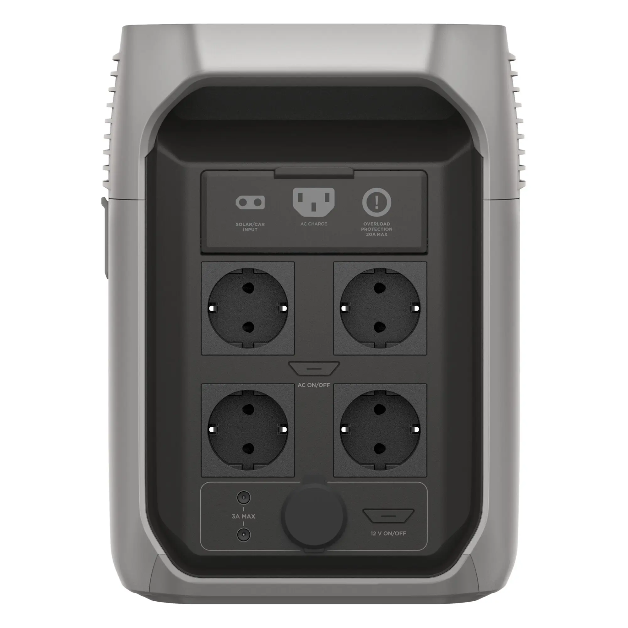 Kurzzeitige Spitzenleistung 3600 W; Ausgänge (13): 4 x AC, 2 x DC, 2 x USB-A, 2 x USB-A Fast Charger, 2 x USB-C, KFZ.