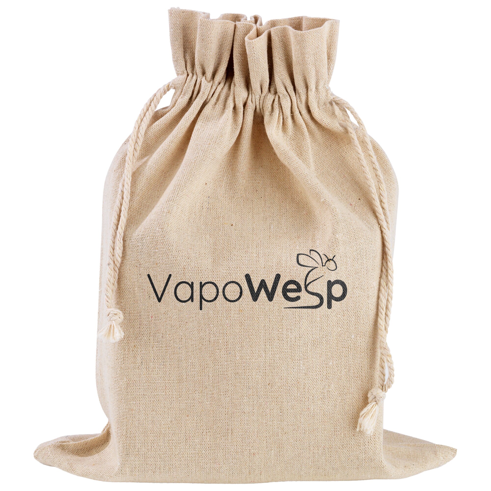Das Starterset enthält: 1 x VapoWesp Räucherbox, 1 x 50 g VapoPulver Orange & Rosemary (Kräutermischung aus Orange & Rosmarin), 1 x Jute-Transportbeutel für die Box