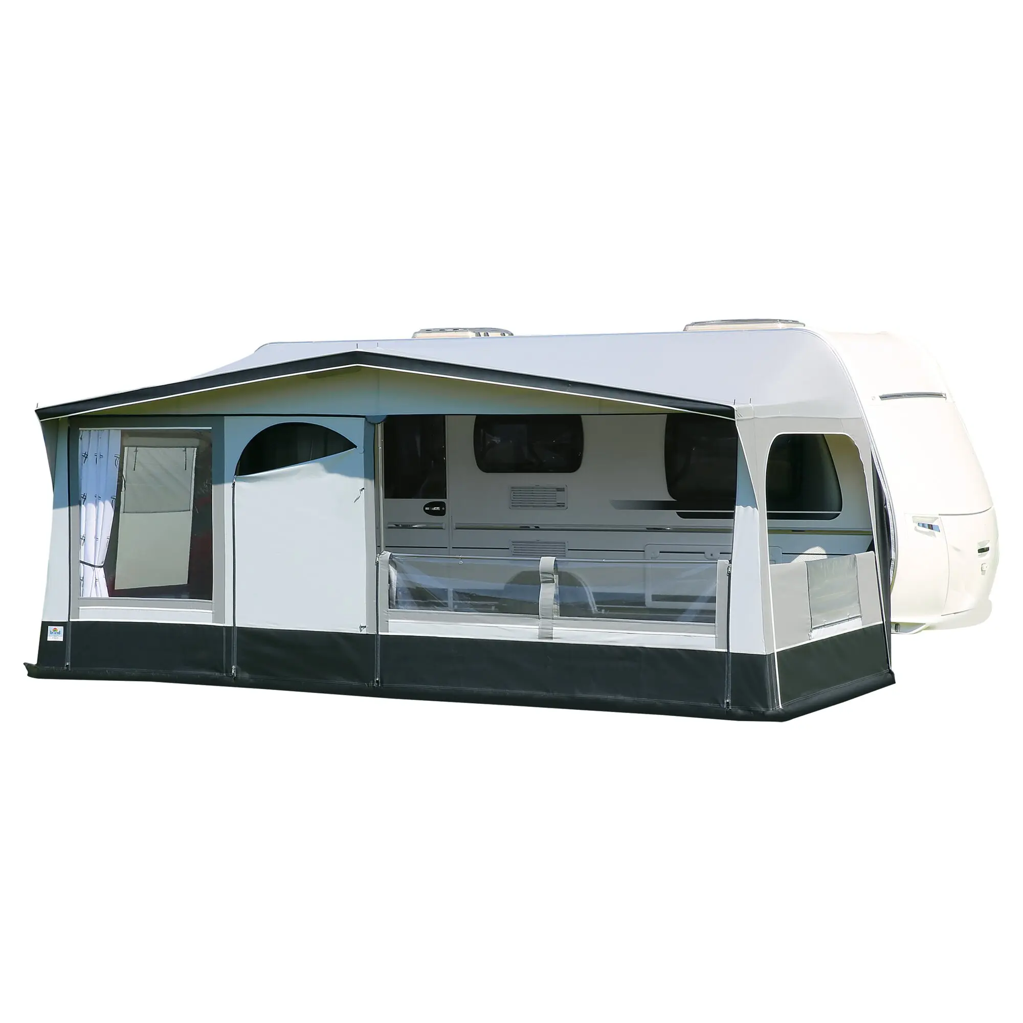 Erweitere deinen Wohnraum und gestalte ihn ganz flexibel nach Wetter und Bedürfnissen – das Wohnwagen Vorzelt Como ist der ideale Begleiter für deine Reisen. Das 5-teilige Reisevorzelt, bestehend aus 1 Dachelement, 2 Seiten- und 2 Frontelementen ist schnell und bequem aufgebaut und zudem kompakt zu verstauen. Die robusten und bewährten TenCate Materialien in Verbindung mit der Außenbeschichtung sorgen stets für ein angenehmes Raumklima im erweiterten Wohnbereich. Das nahtfreie Dach ist von innen dekorativ bedruckt und verfügt über eine reduzierte Schwitzwasserbildung. Die Frontwand bestehend aus 2 Teilen verfügt über eine Eingangstür, welche links von der Mitte oder ganz rechts angebracht werden kann. Die schweren und robusten Reißverschlüsse versprechen eine lange Nutzung. Auch die Seitenwände verfügen über Eingänge sowie Gaze-Fenster mit zusätzlicher wetterfester Folienabdeckung. Die Reißverschlüsse der Seitenwände werden durch eine Stoffabdeckung geschützt. Sowohl Front- als auch Seitenwände lassen sich durch ihre Klappfunktion zu einer Veranda umgestalten.