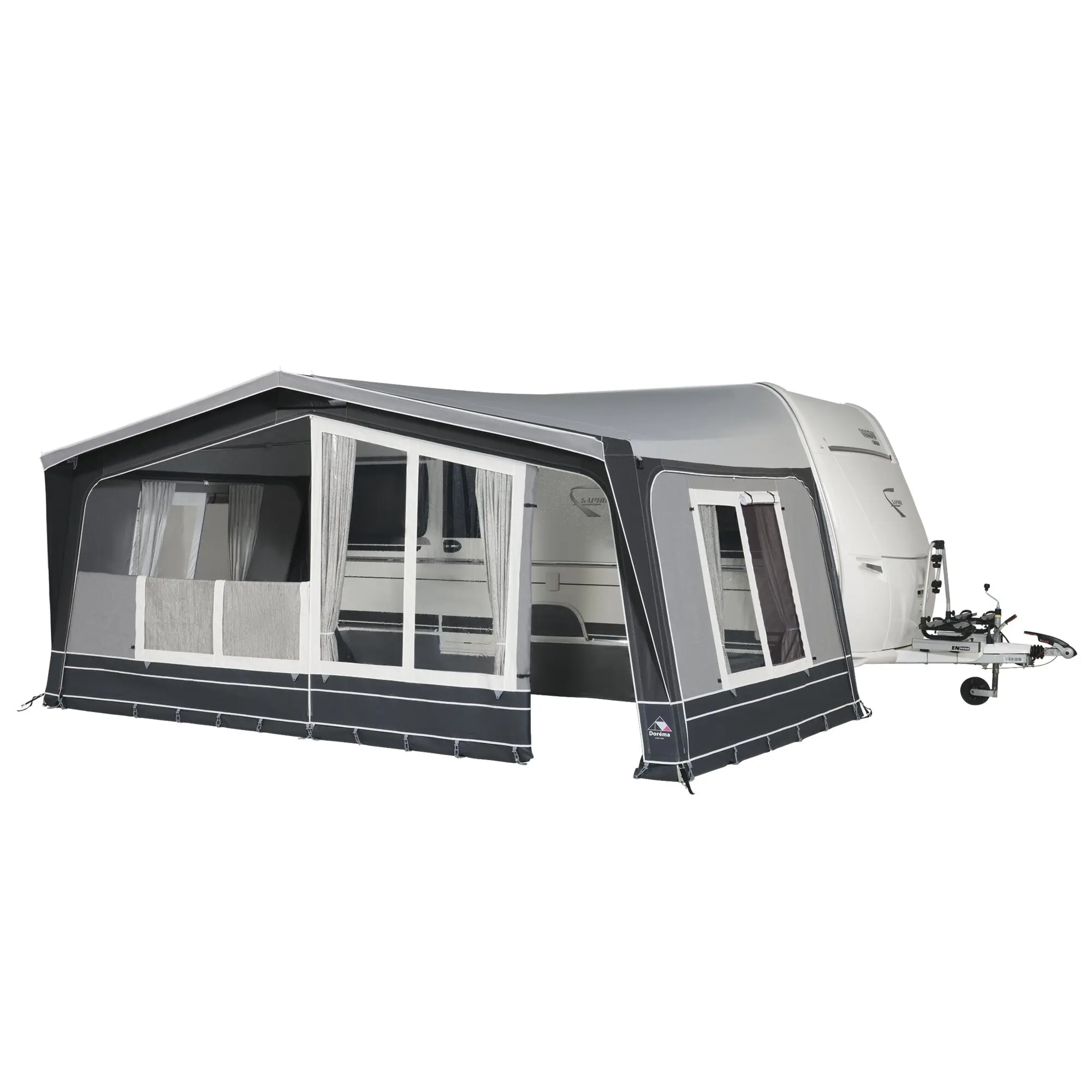 Vorderwand: komplett herausnehmbar, abrollbar (Veranda-Effekt), mit Fenstern und OPTI-Reißverschlüssen