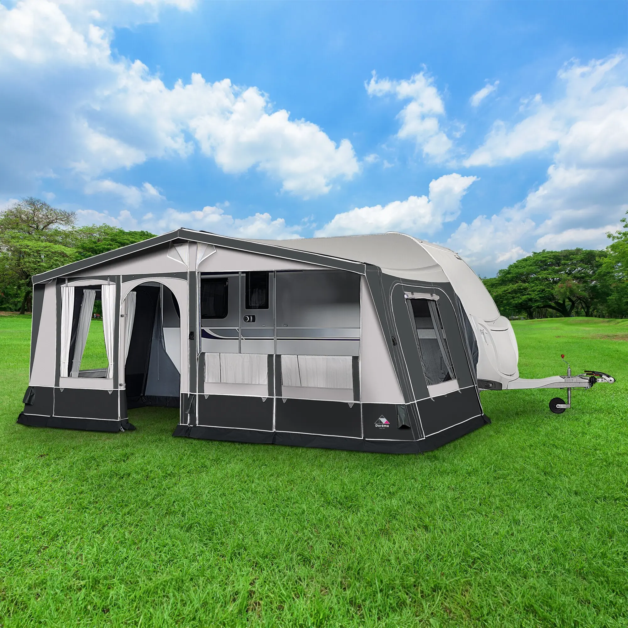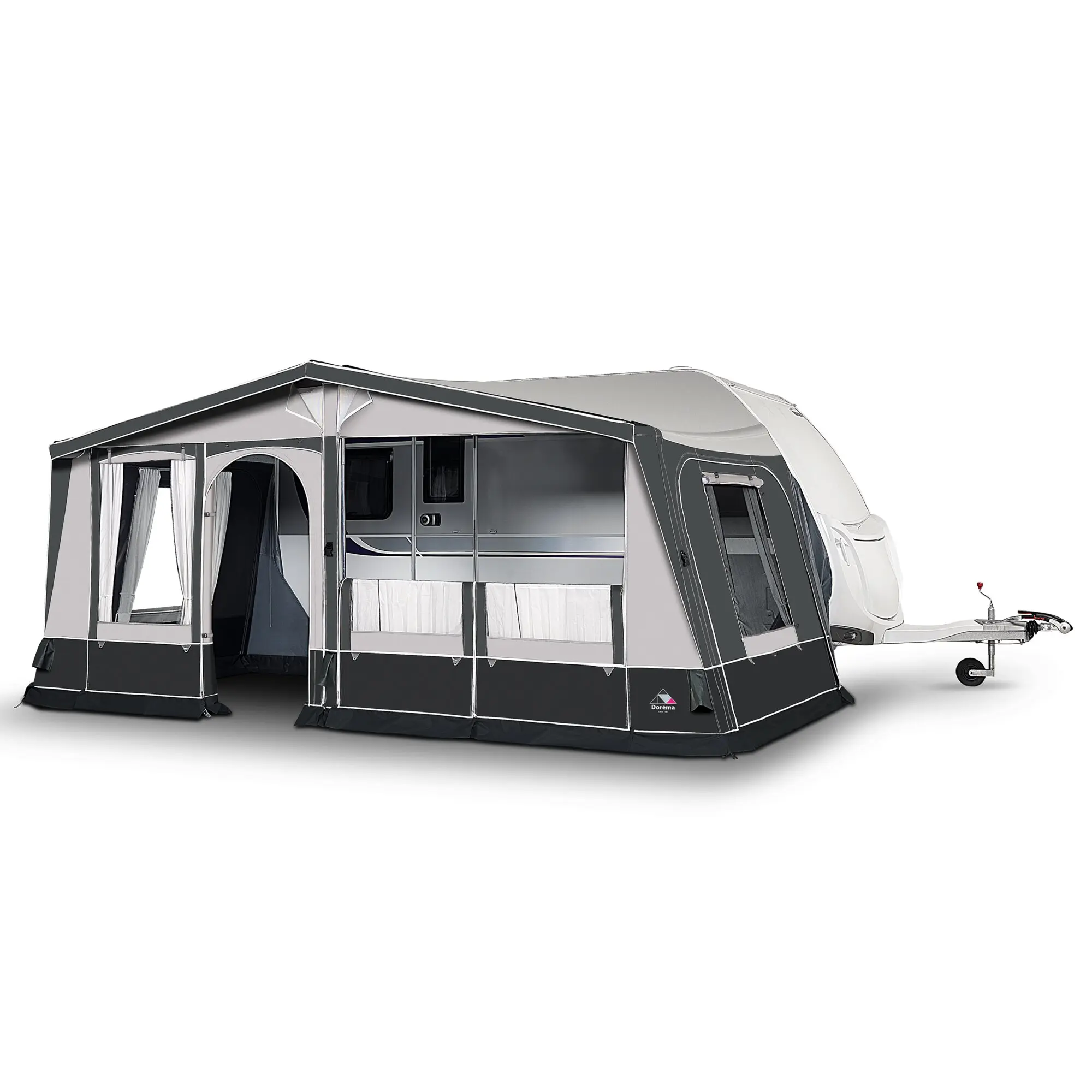 Mit dem Horizon Air De Luxe beginnt der Urlaub entspannt und komfortabel. Dank des innovativen EAF-Systems lässt sich das aufblasbare Vorzelt mühelos einziehen, aufblasen und in kürzester Zeit aufstellen – ganz ohne Gestänge. Perfekte Stabilität, höchste Qualität und eine durchdachte Funktionalität machen es zu einem idealen Begleiter für jede Reise. Das robuste DormaTex-Material der Seitenwände sorgt für eine lange Lebensdauer, während das All-Season-Dach die Schwitzwasserbildung reduziert und UV-beständig ist. Die Vorderwände sind flexibel austauschbar, verschließbare Fensterklappen und abgedeckte Reißverschlüsse bieten zusätzlichen Schutz. Ein doppelter Faulstreifen optimiert die Abdichtung gegen Wind und Feuchtigkeit. Ob Sonne, Regen oder Wind – dieses Vorzelt ist für alle Wetterlagen gewappnet.
