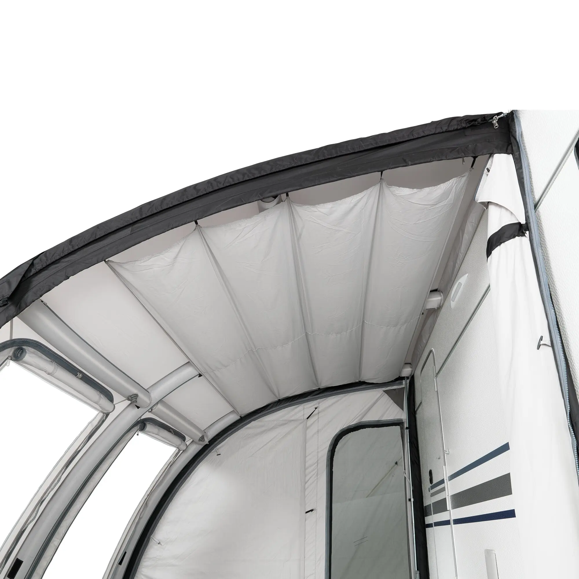 Lieferumfang Zelte: Abspannmaterial, Airtube, Gardinen, Luftpumpe, Radkastenblende, Windschutzblende, Packtasche, Zelt