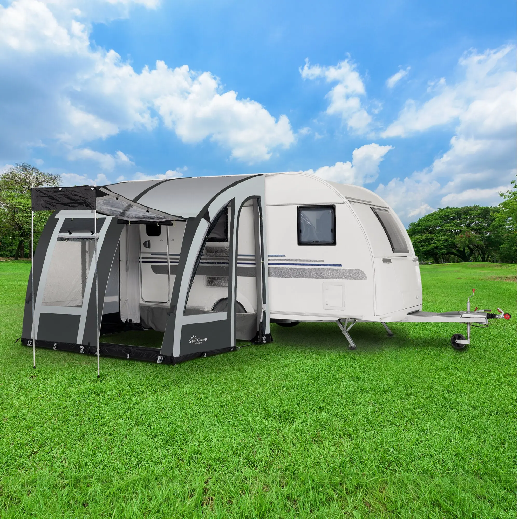 Das Reisevorzelt Magnum Air Force überzeugt mit hochwertigen Materialien, innovativer Technik und maximaler Flexibilität. Dank des bewährten EAF-Systems ist der Aufbau denkbar einfach: einziehen, aufblasen und fertig – ganz ohne Gestänge. Die Konstruktion bietet hohe Stabilität und trotzt jeder Wetterlage. Durch clevere Erweiterungsmöglichkeiten passt sich das Vorzelt individuellen Bedürfnissen an und schafft ein komfortables Reiseerlebnis. Perfektes Handling und durchdachte Features machen den Urlaub noch entspannter. Geeignet für Wohnwagen mit einer Kederleiste von 235 – 255 cm.