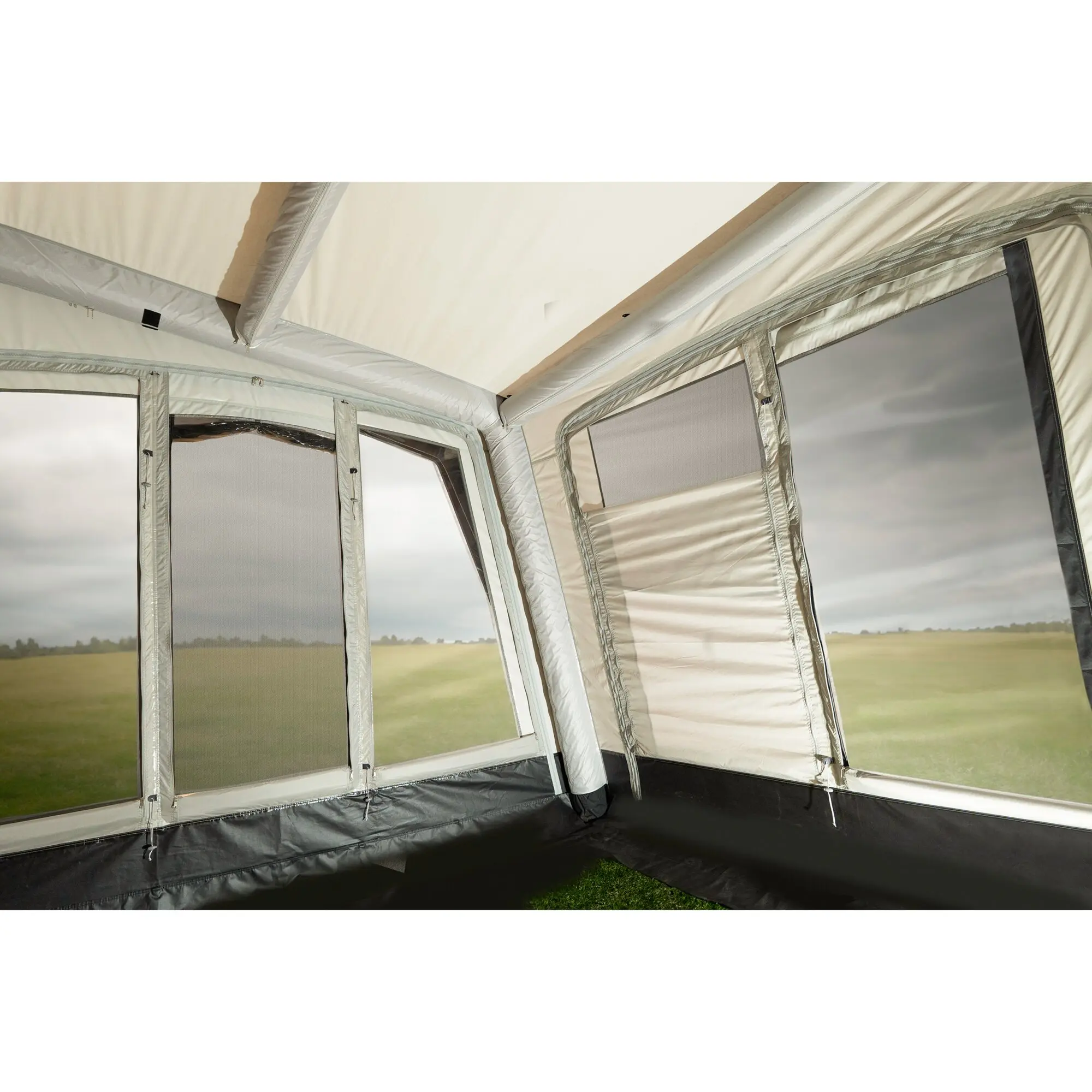 Das Luftvorzelt Pluto ist dank der AAS-Lufttechnik schnell und einfach aufgebaut. Durch den Volleinzug in der Kederschiene Ihres Caravans lassen sich alle Fenster, Türen und Serviceklappen problemlos öffnen und Ihr Caravan ist an den Seiten perfekt gegen Wind und Wetter abgedichtet. Durch das hochwertige HydroTech® CottonTouch Material, die Dauerventilation und die abgetönten Fenster kann auch an heißen Sommertagen ein sehr gutes Raumklima erreicht werden. Die abnehmbaren Vorder- und Seitenwände sind mit Moskitonetzen ausgestattet und können nach Bedarf eingesetzt werden. Dieses Modell ist außerdem mit einem Anschluss für das Sonnendach Canopy Shady Pro ausgestattet.