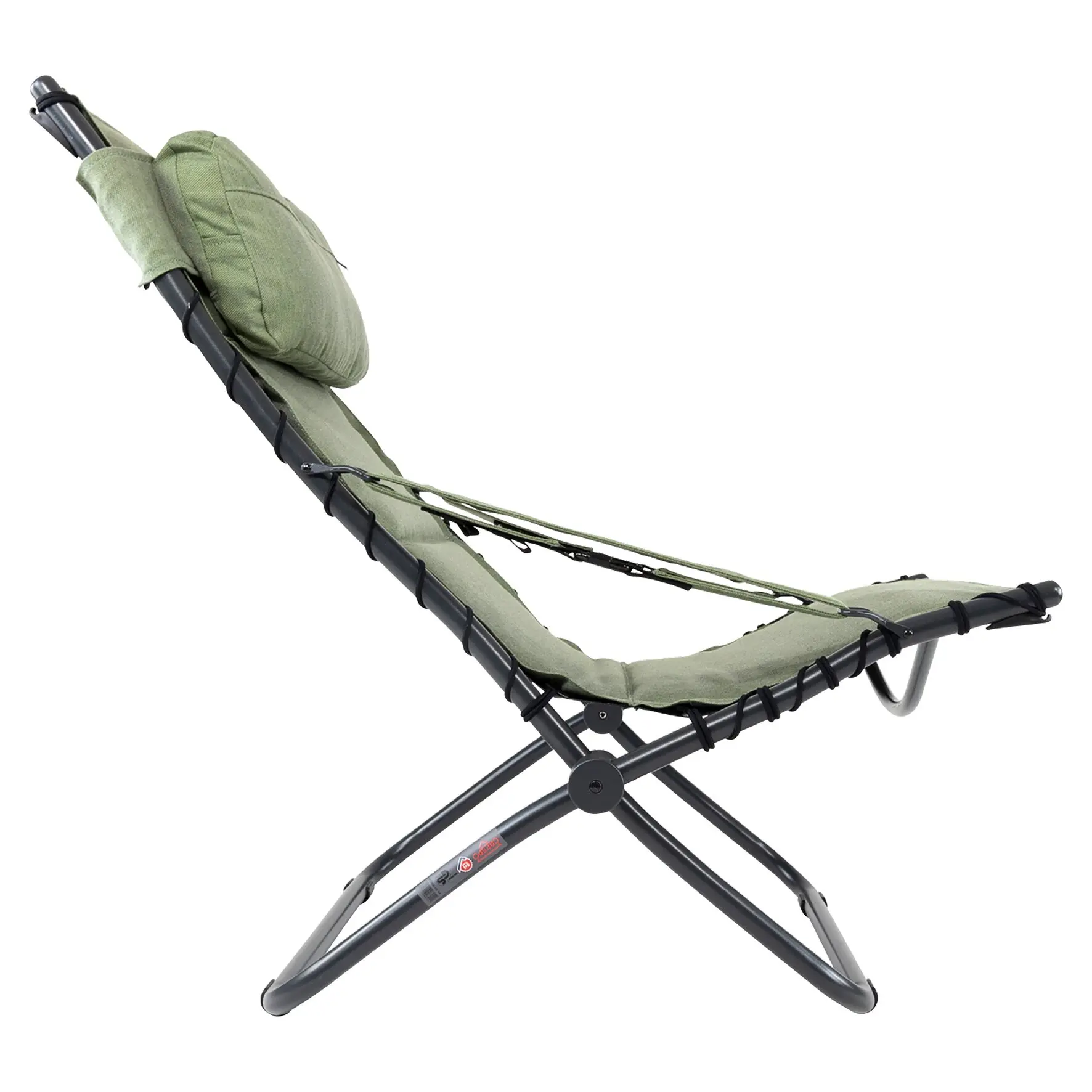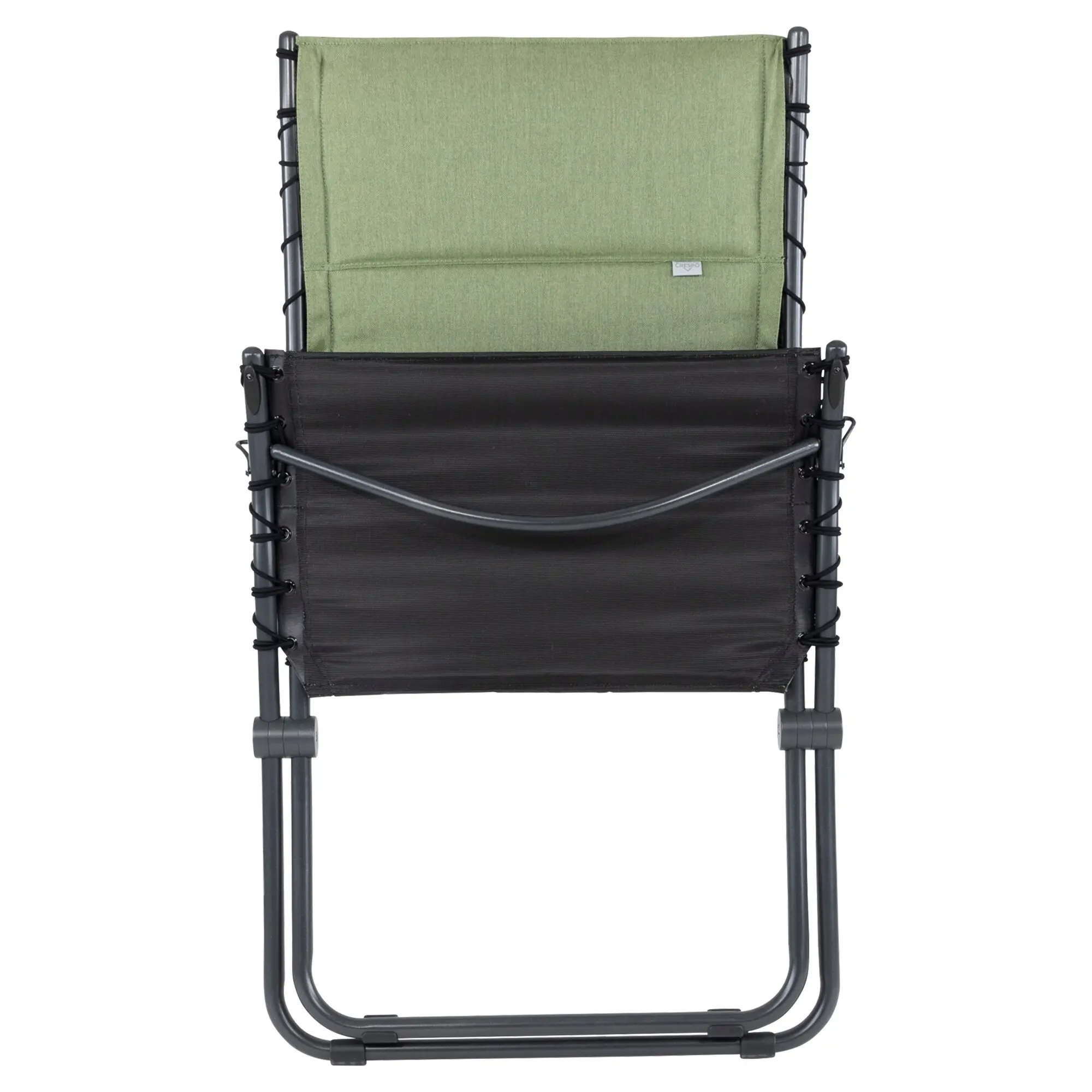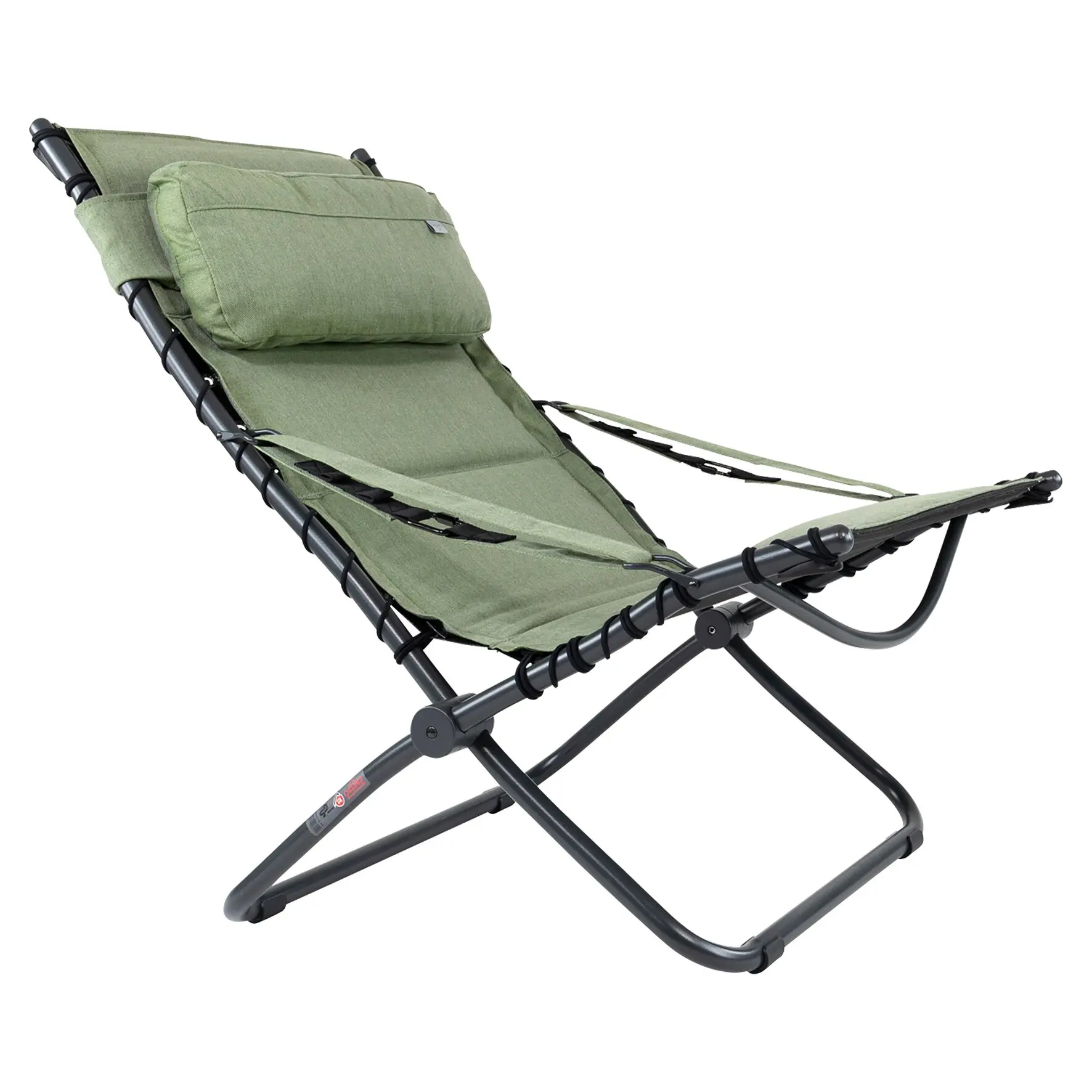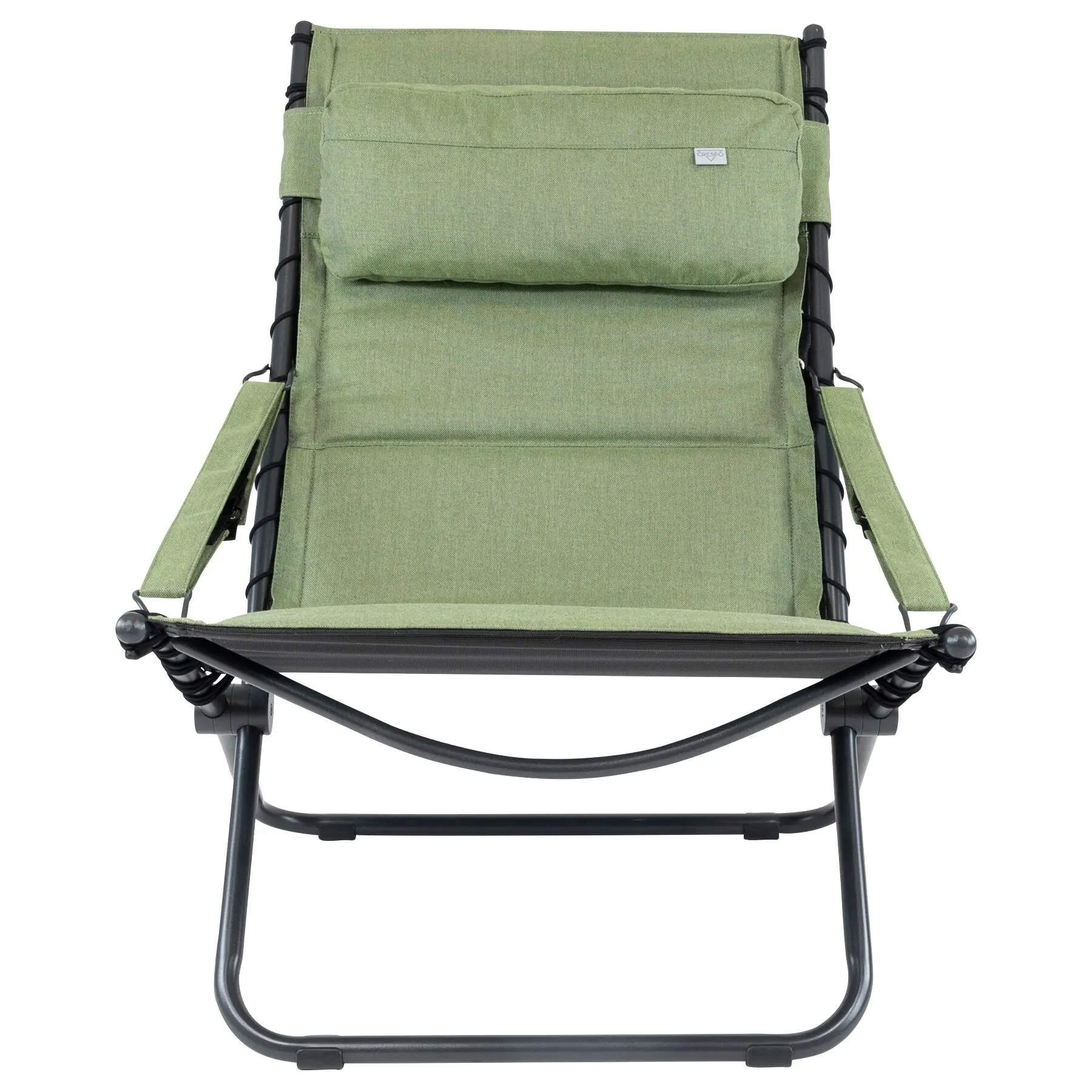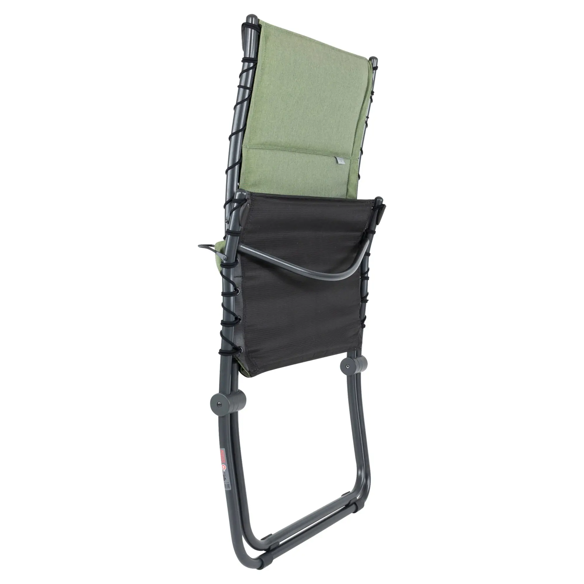 Der äußerst luxuriöse und bequeme Relaxsessel ist in 3 Positionen verstellbar und bietet so optimalen Sitzkomfort. Darüber hinaus sind sowohl die Rückenlehne als auch die Armlehnen ergonomisch geformt und der Stuhl lässt sich sehr flach zusammenklappen. Der Stuhl ist mit einem angenehm gepolsterten Tex-Comfort-Gewebe ausgestattet. Dieses Gewebe ist aufgrund seiner offenen Zellstruktur sehr pflegeleicht, wasserabweisend und besonders beständig gegen Verfärbungen durch die Sonne. In Kombination mit der elastischen Befestigung sorgt das gepolsterte Gewebe für ein optimales Sitzerlebnis. Der hochwertige Relaxsessel trägt das TÜV-Qualitätssiegel und eignet sich ideal für den Garten oder den Campingplatz.
