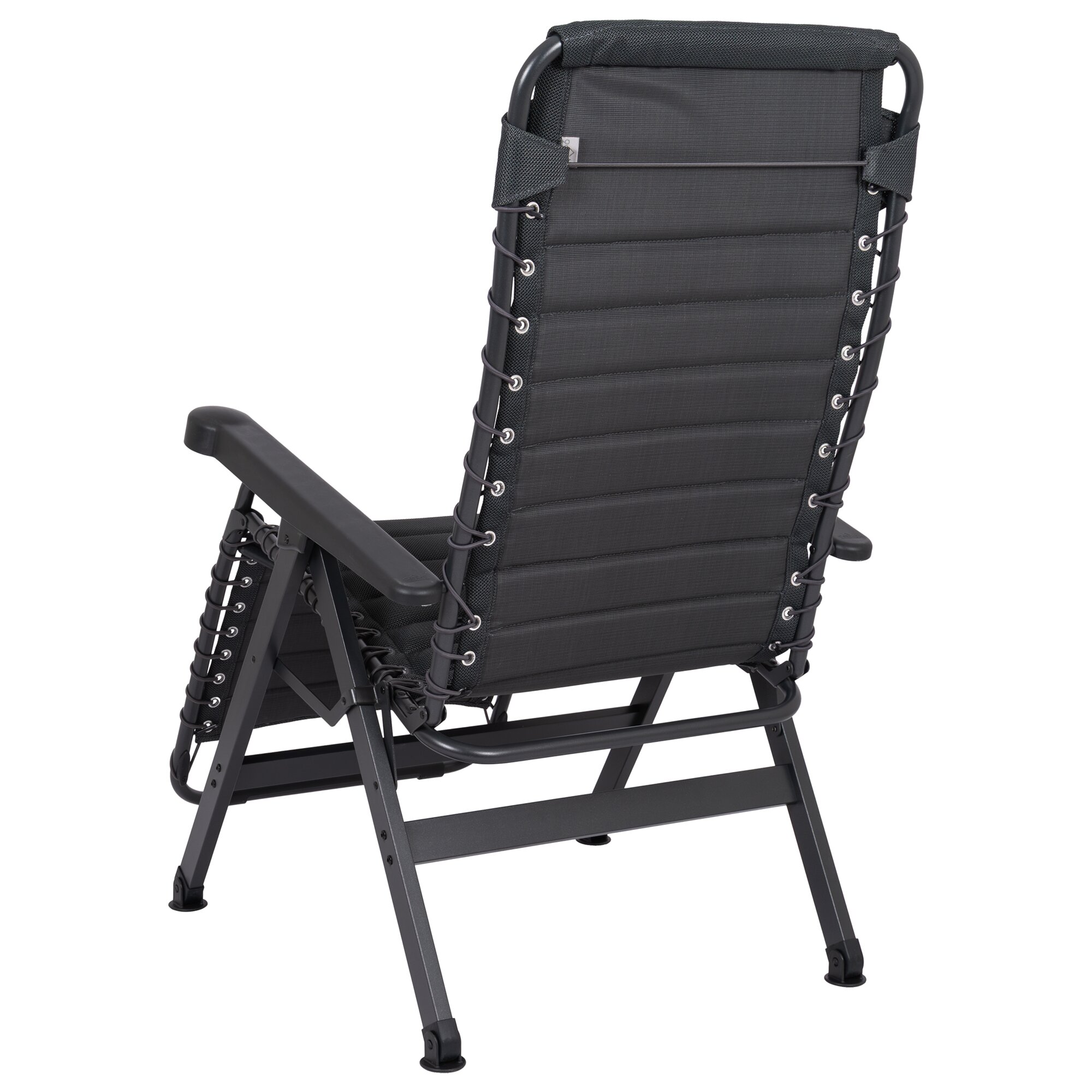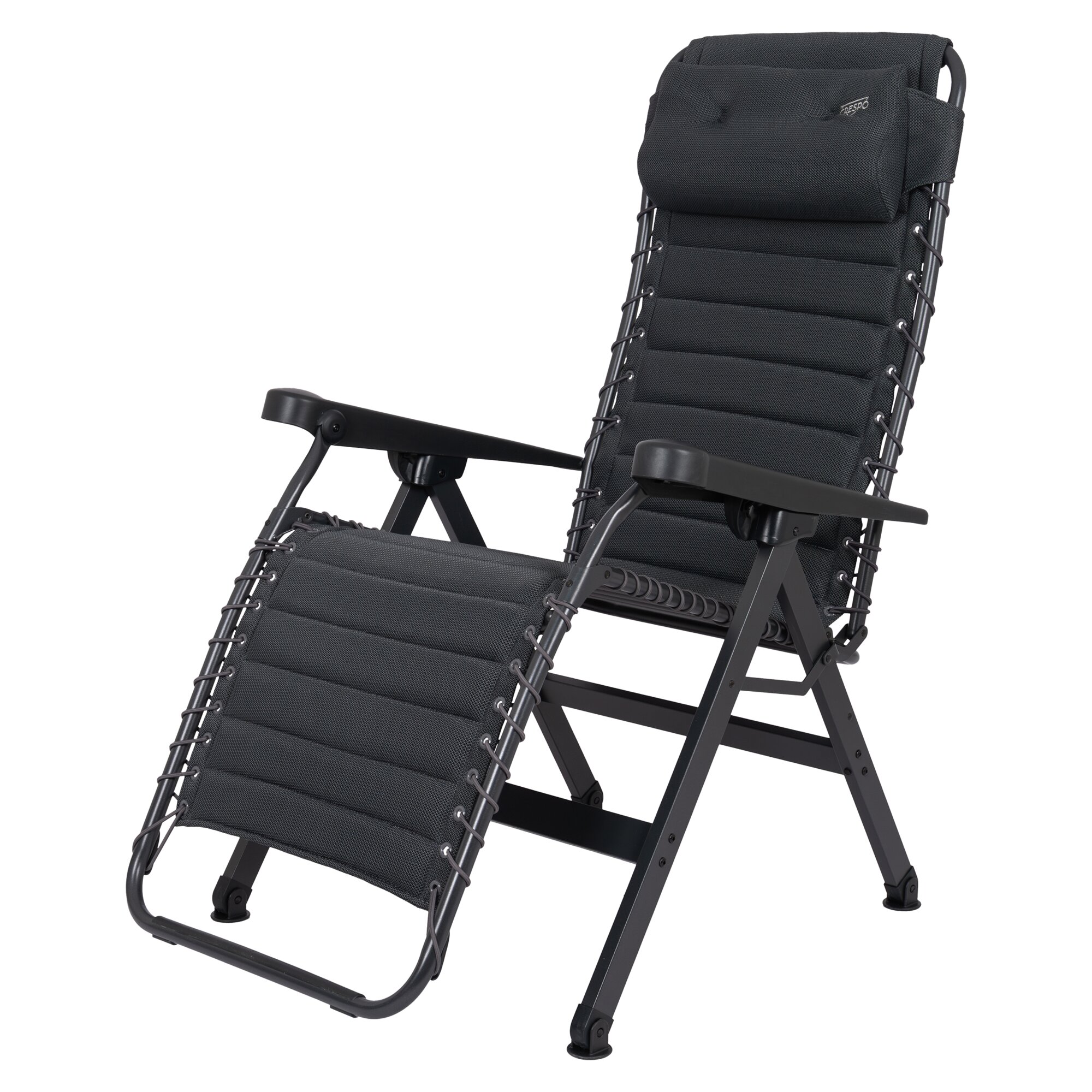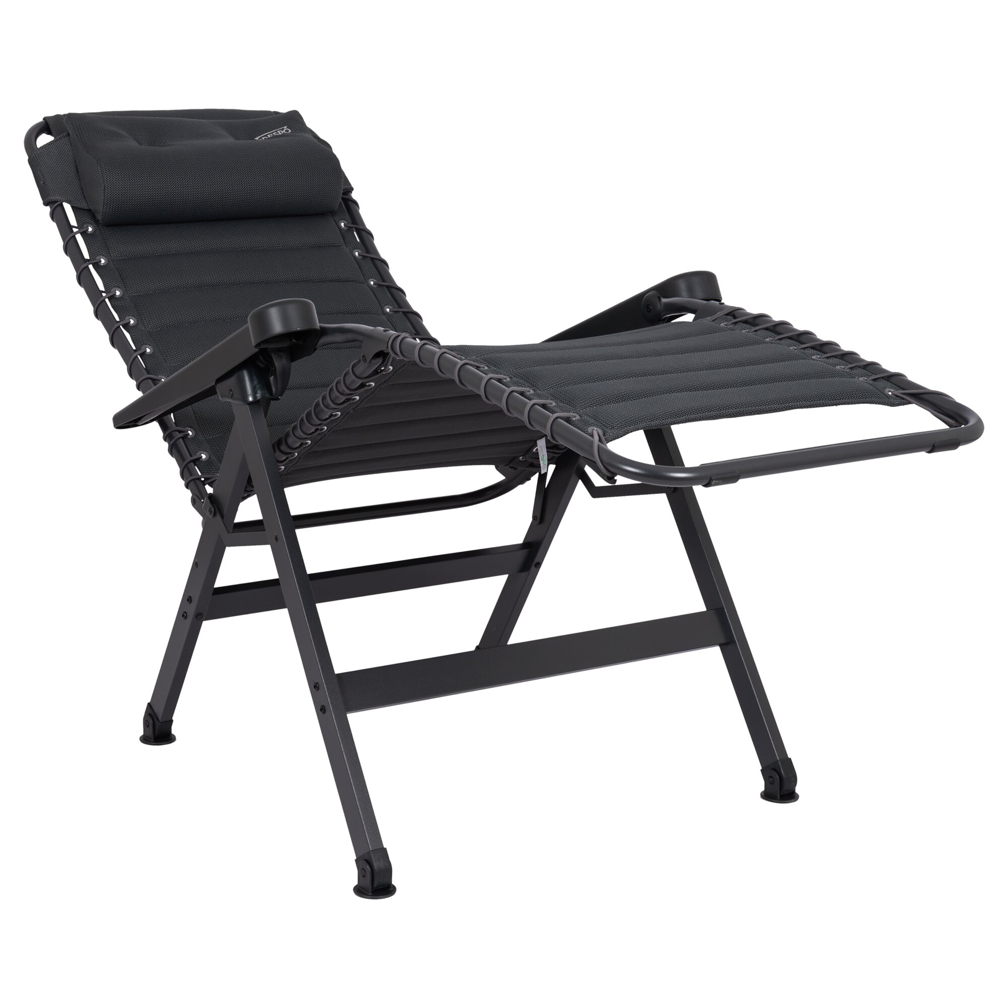 Ergonomischer, stufenlos verstellbarer Relaxsessel mit atmungsaktiver Air-Select Dry Foam-Polsterung. Mit stabilem H-Rahmen, rutschfesten Fußkappen und kompakter Faltfunktion. Inkl. Tragetasche. TÜV-Gütesiegel.