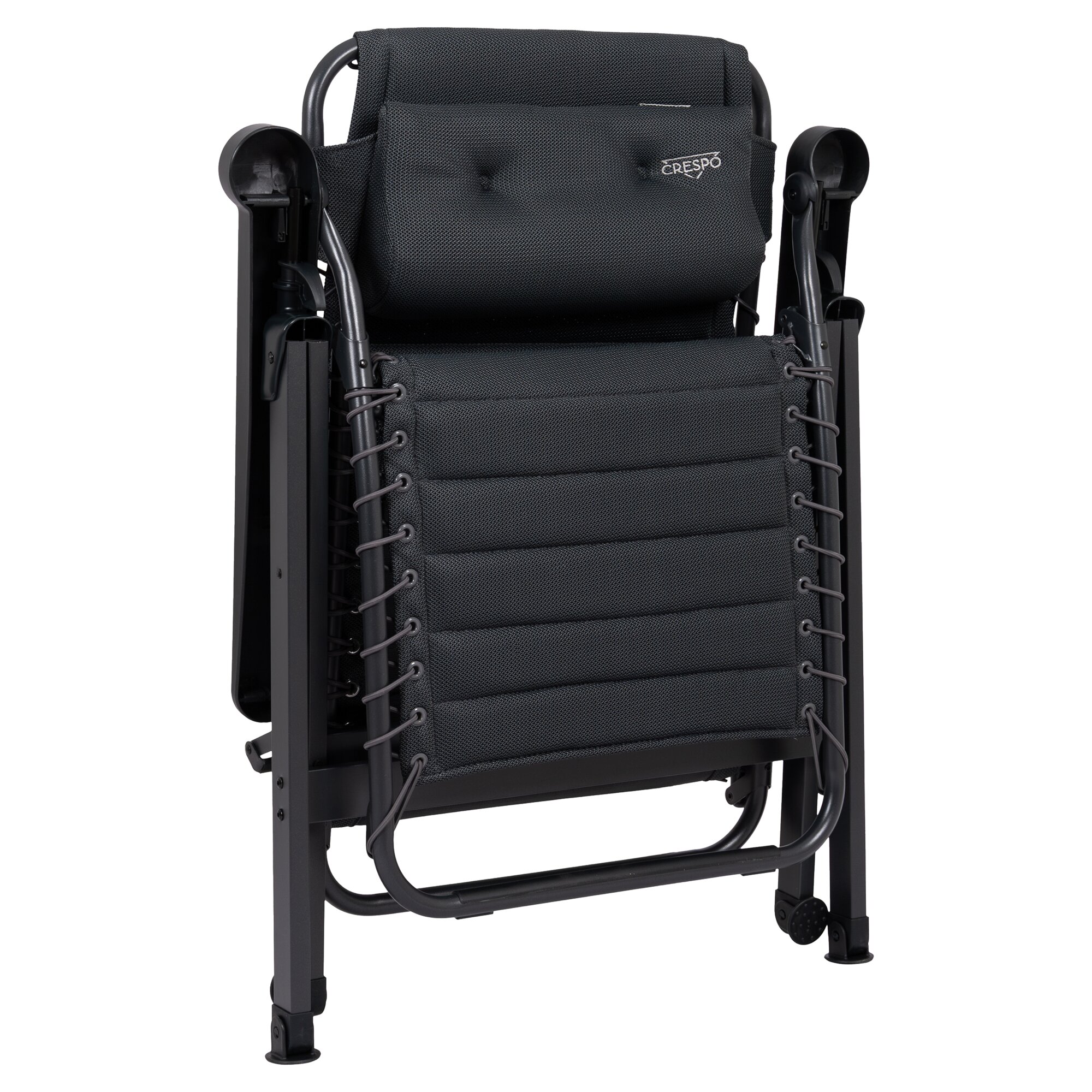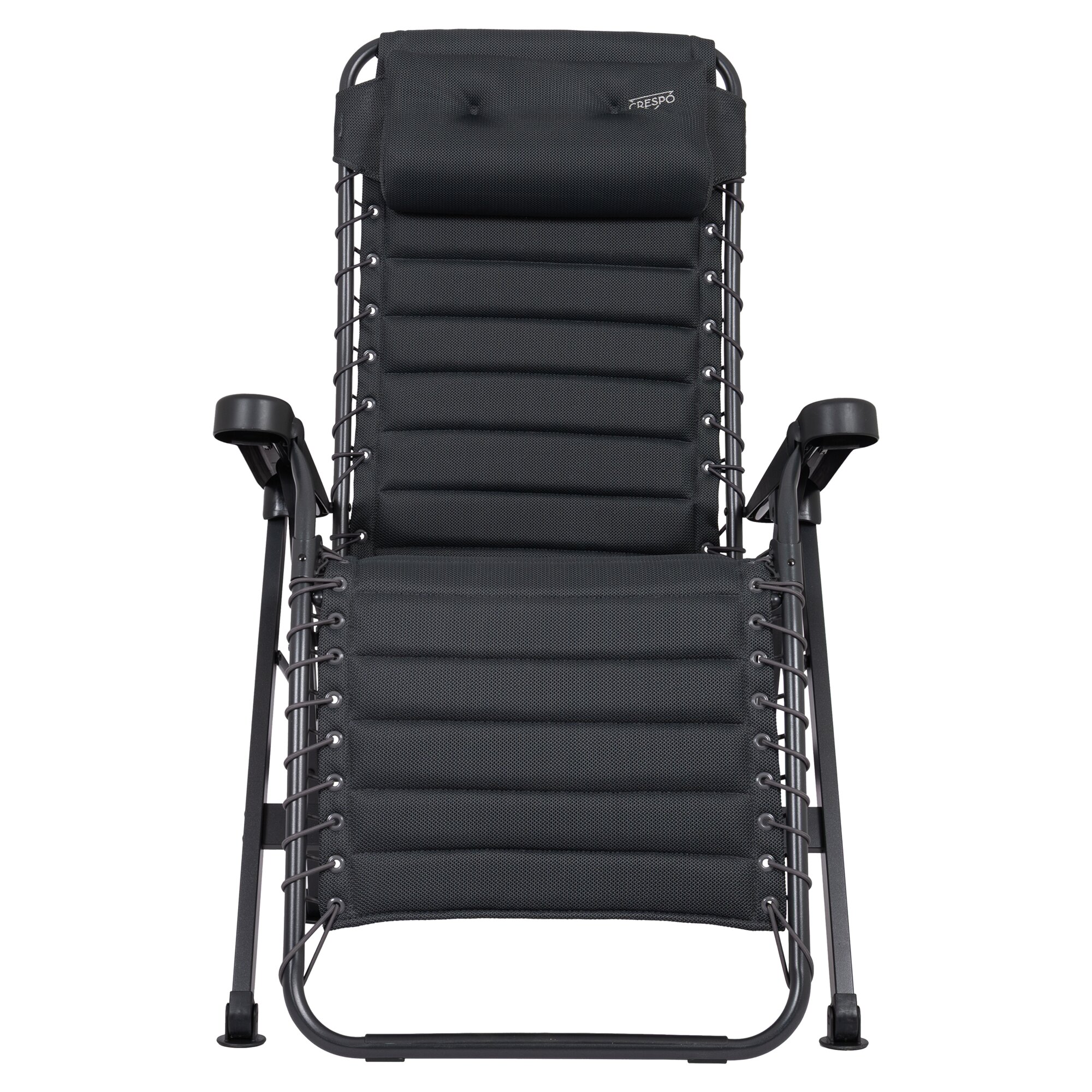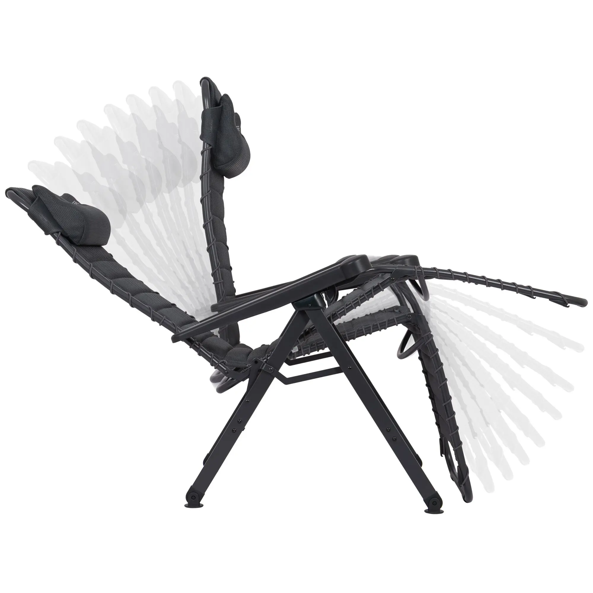 Ergonomischer, stufenlos verstellbarer Relaxsessel mit atmungsaktiver Air-Select Dry Foam-Polsterung. Mit stabilem H-Rahmen, rutschfesten Fußkappen und kompakter Faltfunktion. Inkl. Tragetasche. TÜV-Gütesiegel.