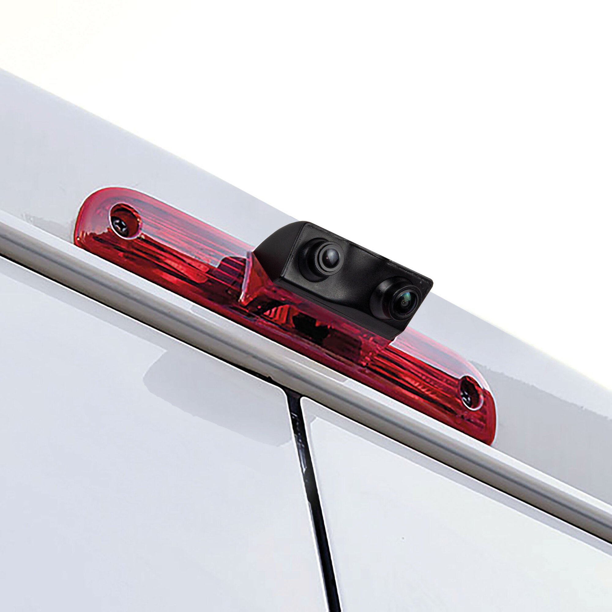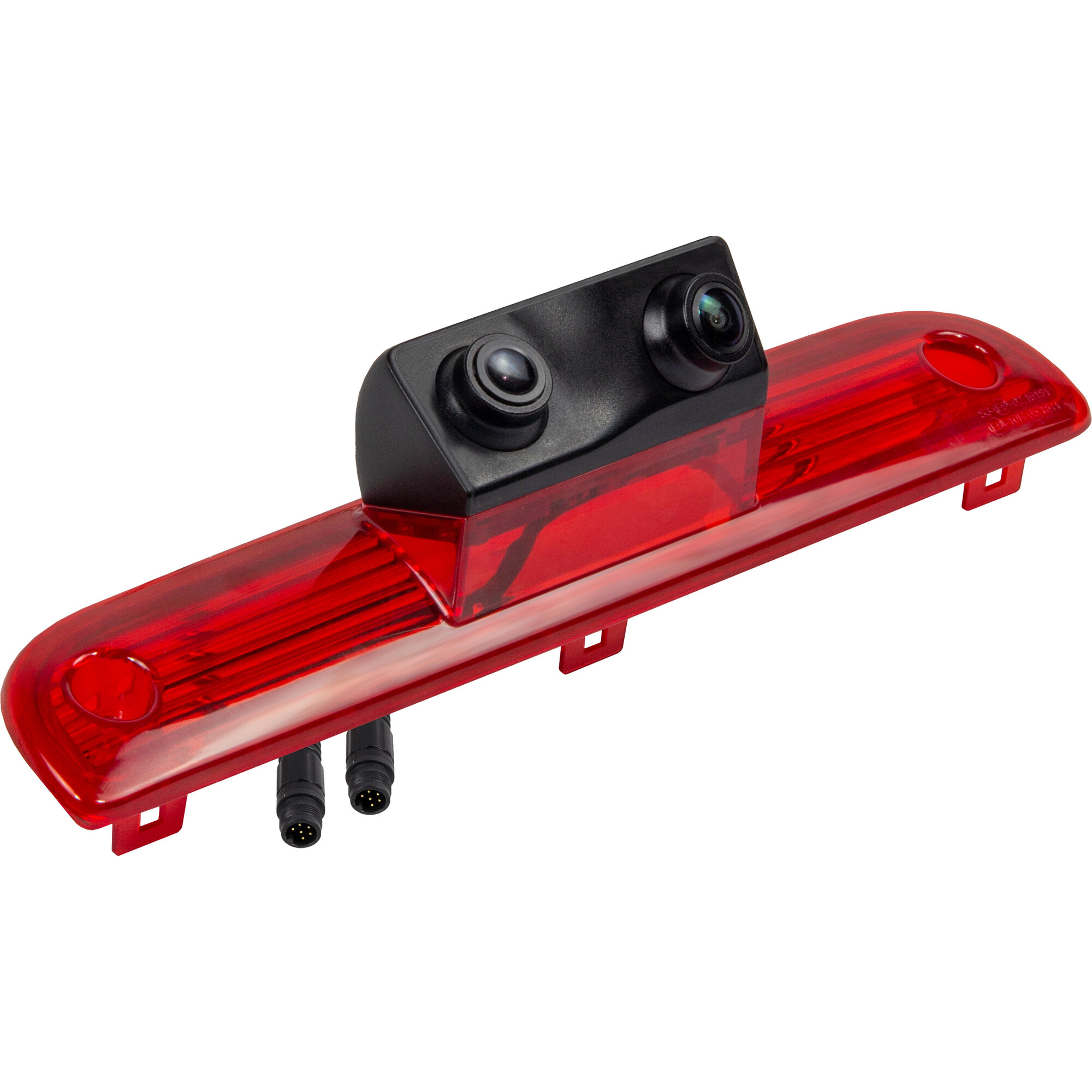 Speziell für den Fiat Ducato ab Baujahr 2006/07 konzipierte Doppelkamera, die wie die FF-DUC100 auf die Bremsleuchte aufgesteckt wird. Eine Linse schaut als Parksicht nach unten, die zweite zur Weitsicht nach hinten. Im Lieferumfang sind 15 m Spezial-Kameraleitung zum Anschluss an 2 Monitore bzw. Naviceiver mit 2 Video-Eingängen enthalten.