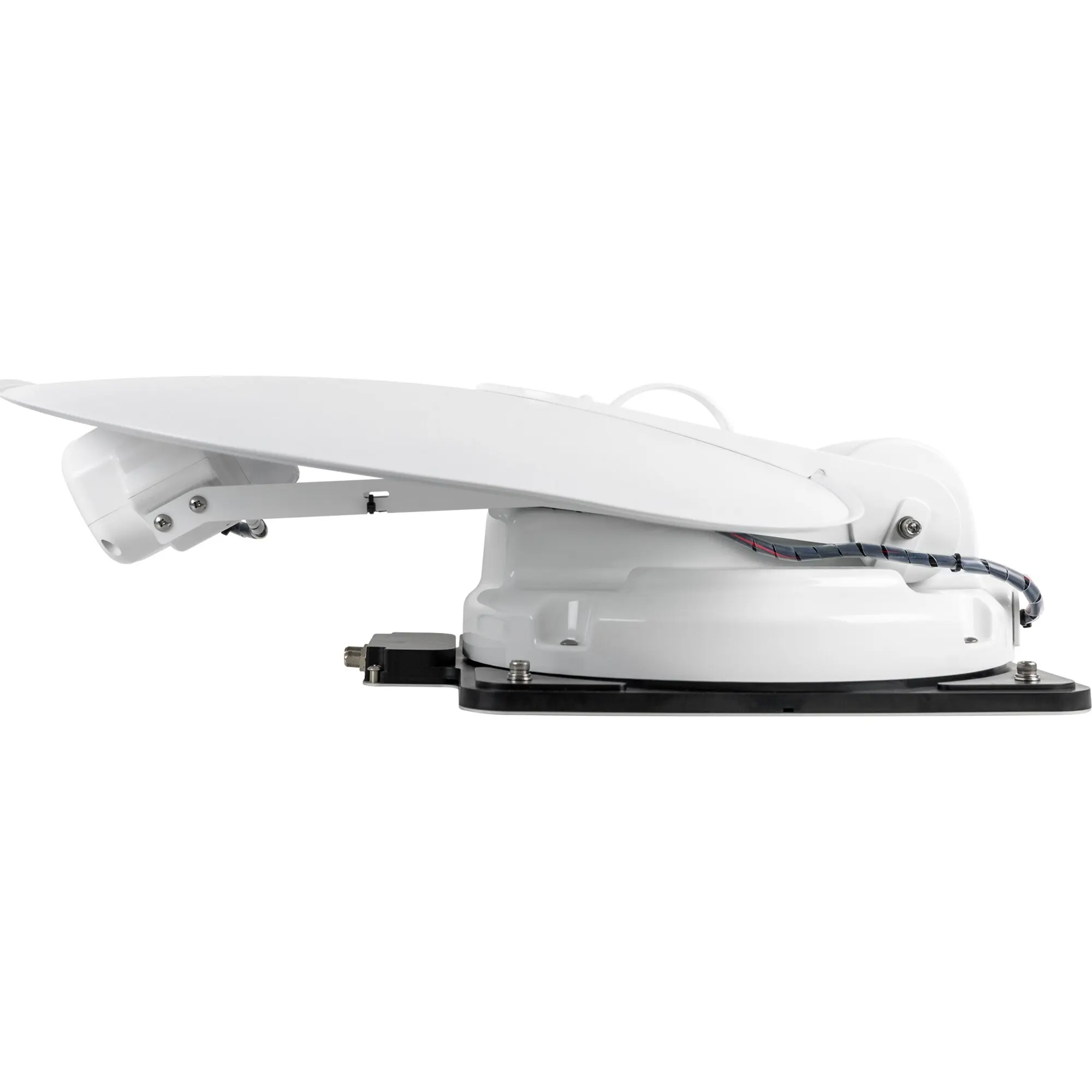 Spiegelgröße 55 cm, Twin-LNB, GPS-Empfänger, Frequenzbereich 10,7 – 12,75 GHz, Suchwinkel 360°, Betriebstemperatur -25 °C – +70 °C, Maße B 56 x H 16,5 x T 54,6 cm, Gewicht 5,1 kg