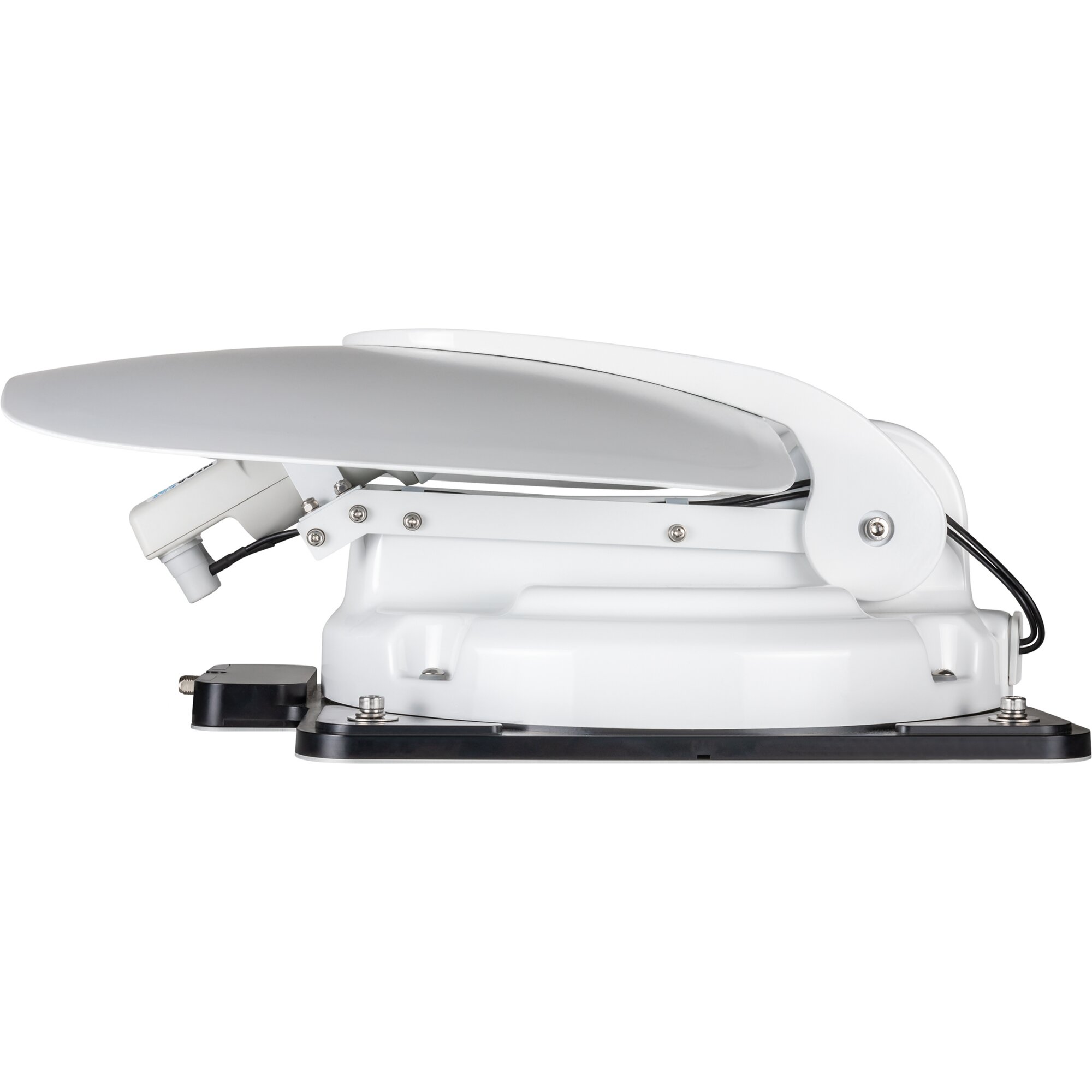 Die Caravanman Kompakt 4 ist die ideale vollautomatische Anlage für Caravans, Kastenwagen oder Reisemobile mit geringer Montagefläche. Mit ihrem kleinen Spiegel und kleinem Schwenkbereich von nur 77 cm findet die Antenne auf jedem Fahrzeug Platz.Per Knopfdruck findet die Antenne in kürzester Zeit den gewählten Satelliten. Durch den integrierten GPS-Empfänger kennt die Antenne bereits beim Start ihren Standort und kann gezielt den passenden Elevationswinkel (Neigung) ansteuern, was den Suchvorgang deutlich beschleunigt. Die Caravanman Kompakt 4 ist vorprogrammiert auf 5 Satelliten: Astra 1, Astra 2, Astra 3, Hotbird und Thor. Transponder-Updates sind nicht mehr erforderlich, weil die Antenne unabhängig davon weiterhin einwandfrei funktioniert. Mit ihrer geringen Höhe von nur 17 cm ist sie eine der niedrigsten Komponenten auf dem Dach. Sie kann dank ihrer Grundplatte auch auf das weiterentwickelte Mobil-Kit (Art.-Nr. 72 249) montiert werden und ist so vor Ort flexibel einsetzbar.