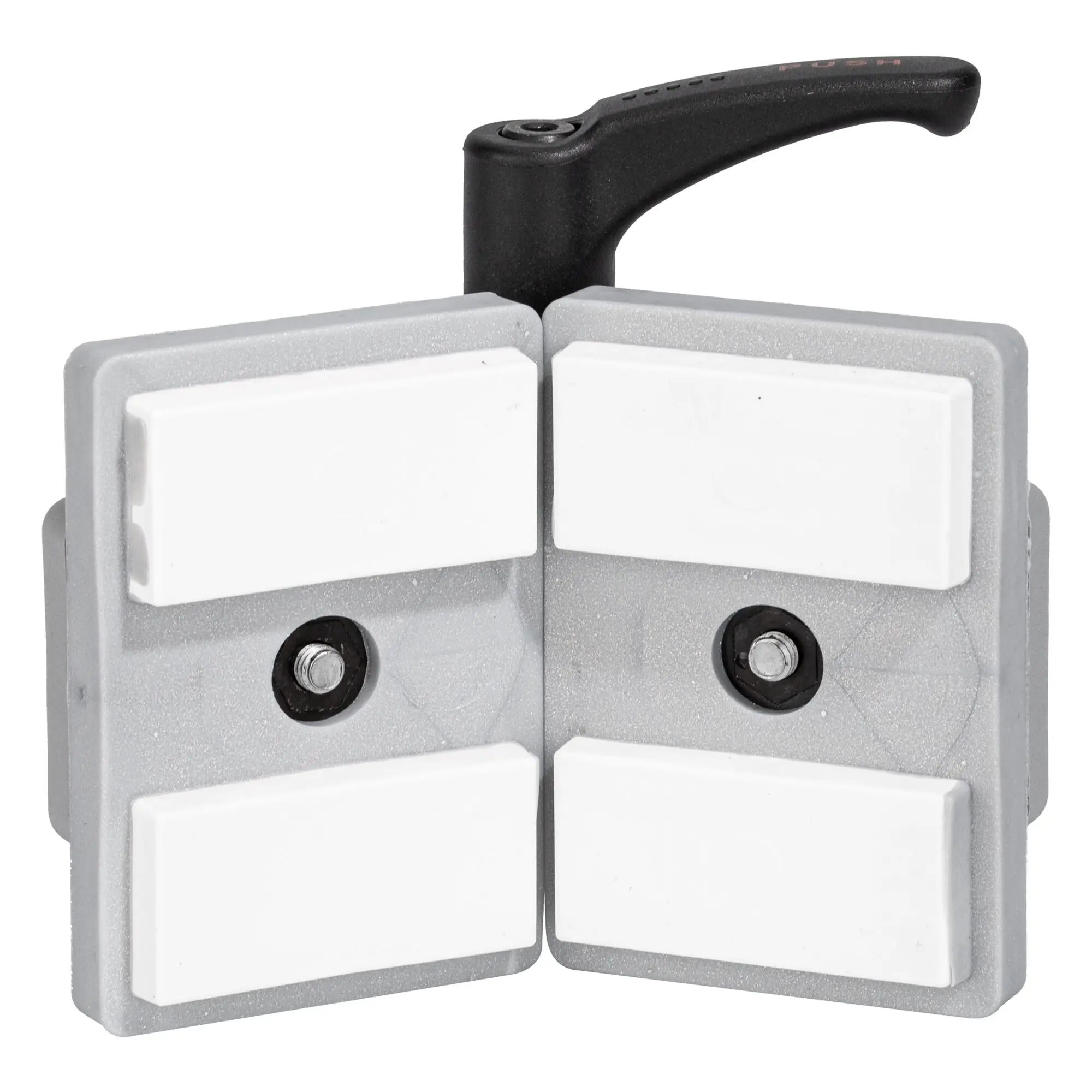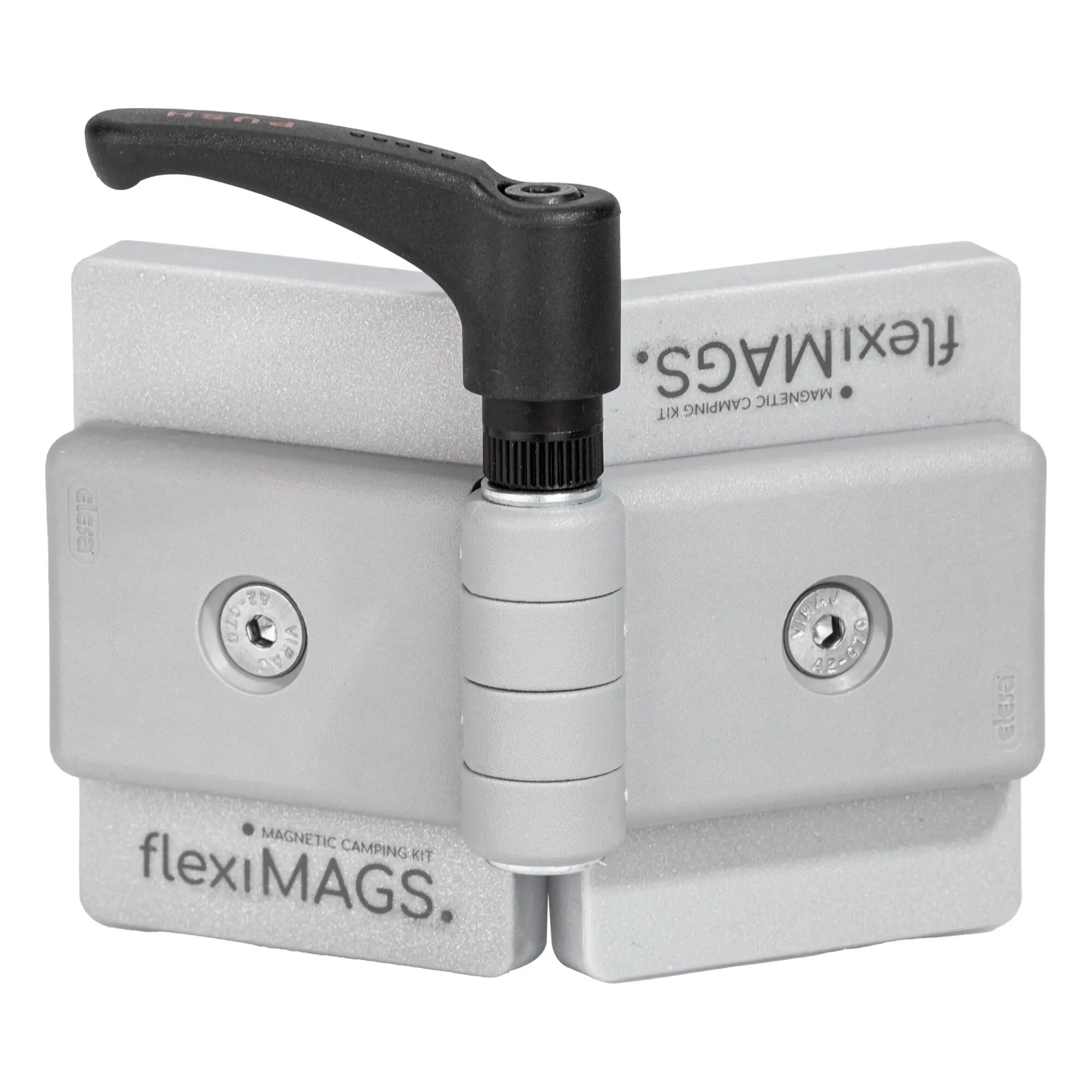 Scharniermagnet mit feststellbarem Hebel. Haltekraft: 35 kg je Seite.