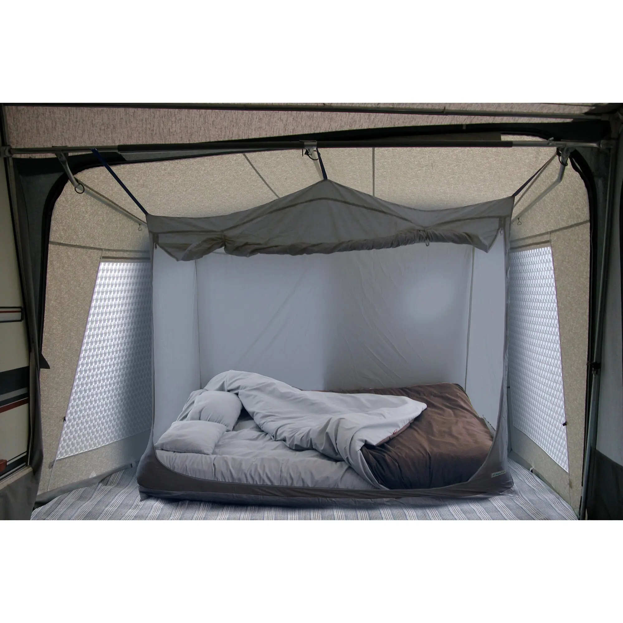 Mit dieser komfortablen Schlafkabine können Sie ungestört schlafen. Sie wird einfach in das vorhandene Vorzeltgestänge eingehängt. Material: 65 % Polyester, 35 % Baumwolle; Bodenwanne: PVC
