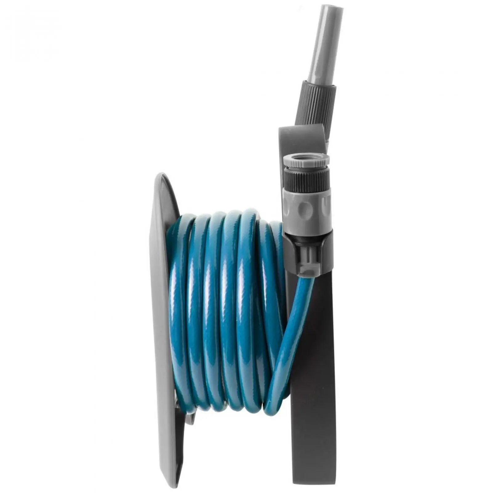 10 m lebensmittelechter 3/8“ PVC-Schlauch, 2 Schnellkupplungen, stabiles Kunststoffgestell, Spritzdüse.
