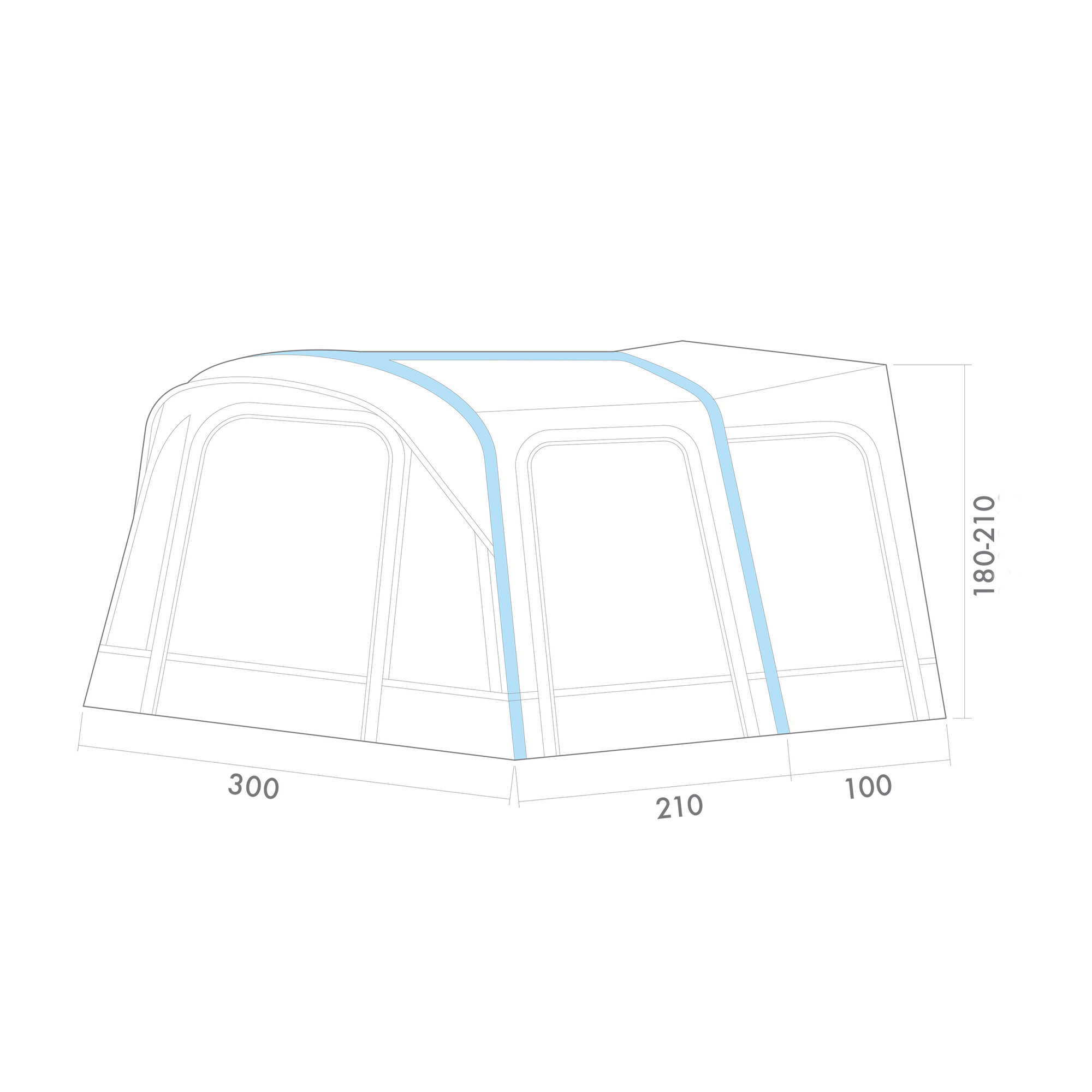 Die funktionale Schleuse verbindet das freistehende Orion Busvorzelt mit Ihrem Fahrzeug. Die Befestigung der Schleuse erfolgt am Zelt über einen Reißverschluss und am Wohnmobil über einen Keder.