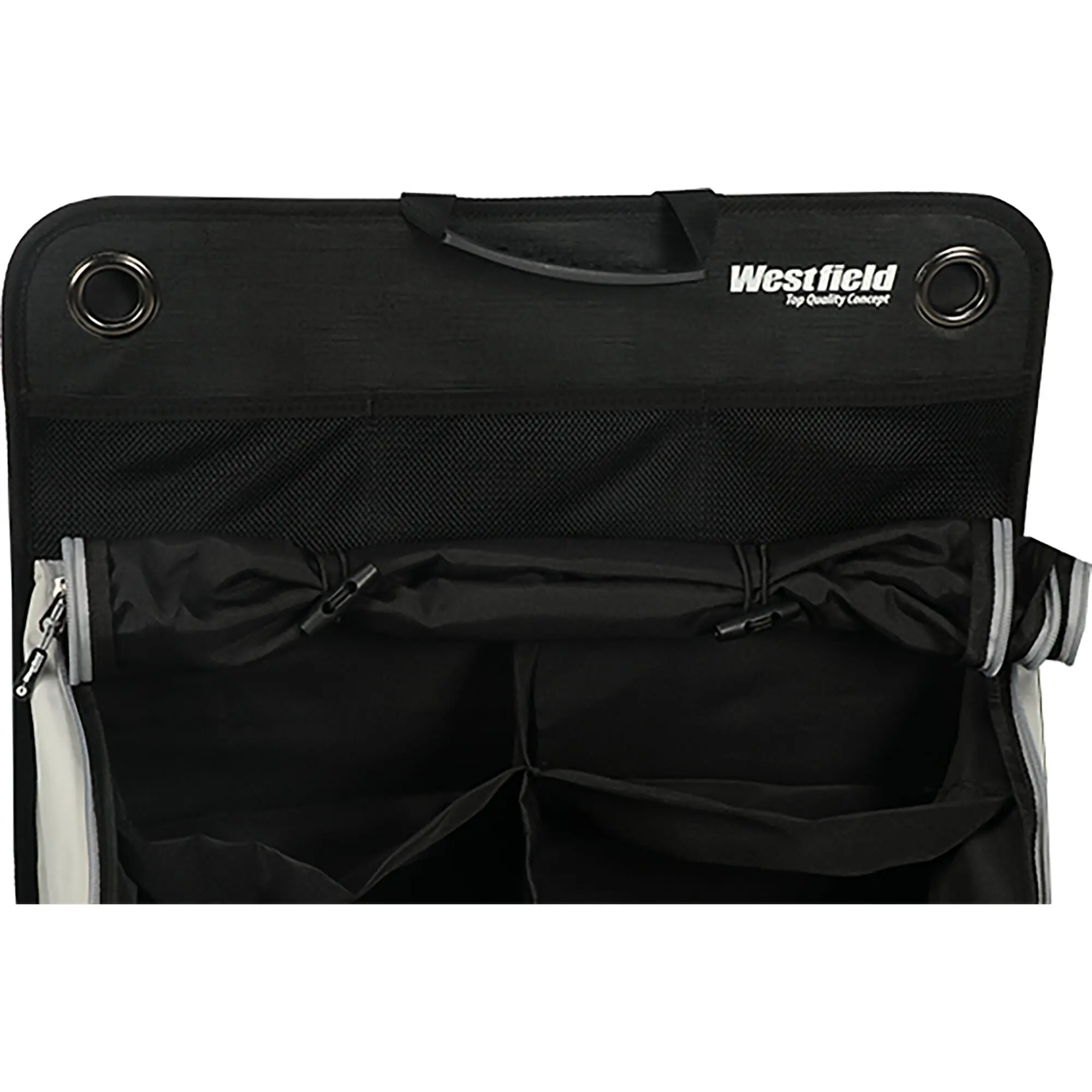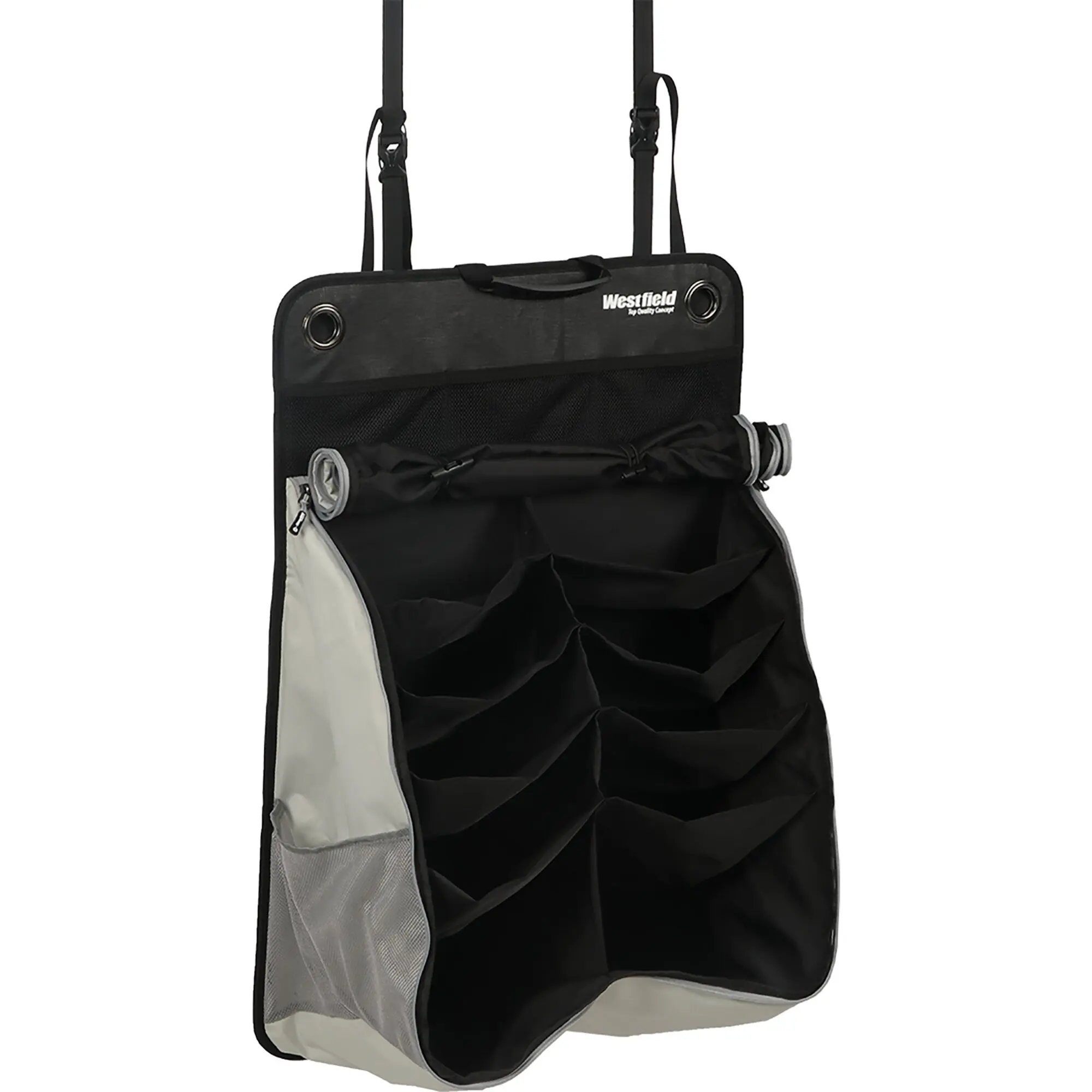 | Zusatzinformation: | Schuhe finden in 10 übersichtlichen Fächern ihren Platz. Er lässt sich nach oben aufrollen und mit einem Knebelverschluss sichern. Für kleinere Gegenstände stehen zusätzlich Mesh-Fächer zur Verfügung. Maße B 49 x H 79 x T 35 cm. |