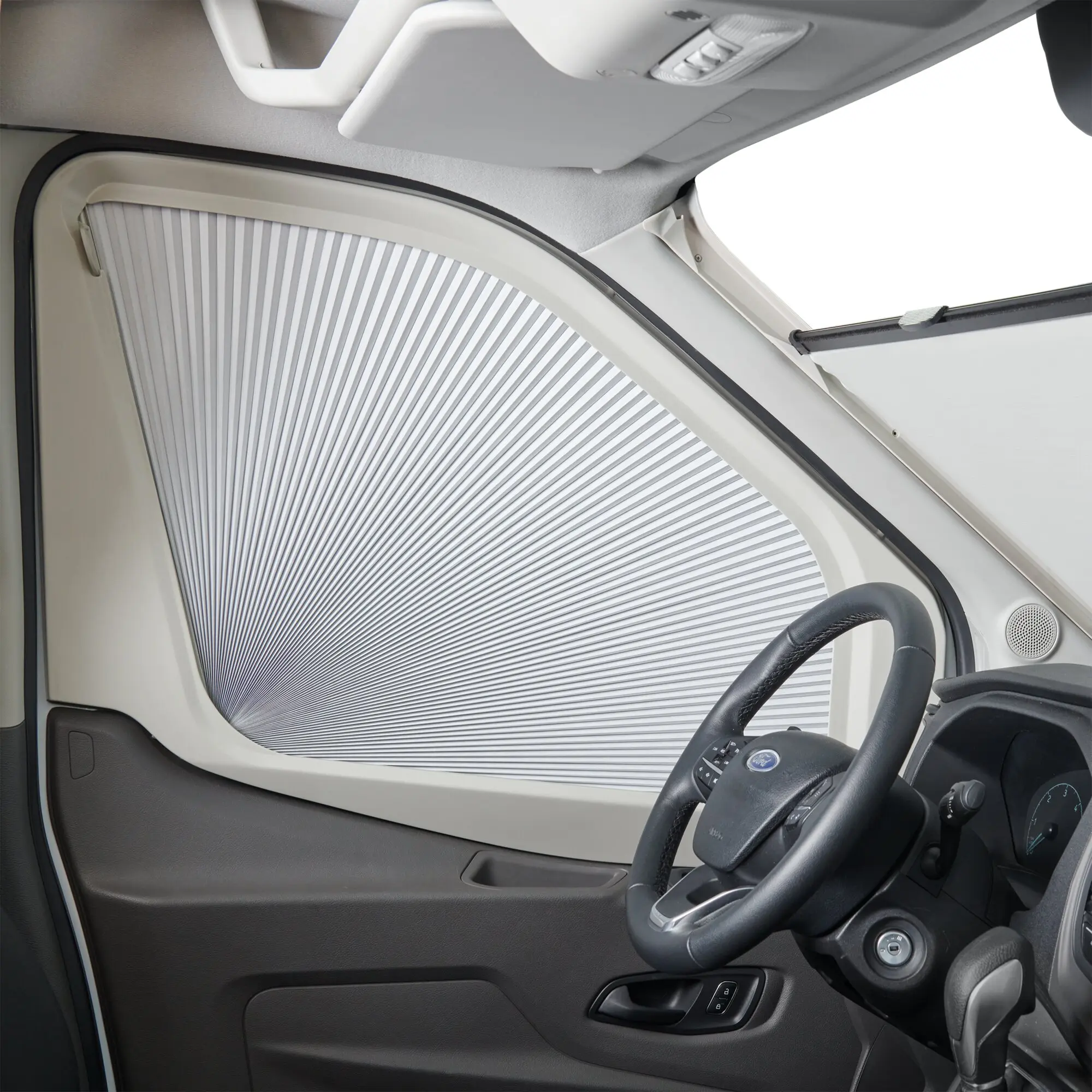 Die SP 410 Seitenfenster-Verdunkelung ist die ideale Lösung für alle, die Wert auf Komfort, Privatsphäre und Schutz legen. Entwickelt für die ab Juli 2019 produzierten Ford Transit V363 Facelift-Modelle, bietet dieses passgenaue System nicht nur eine effektive Verdunkelung, sondern auch eine ausgezeichnete Isolierung gegen Hitze und Kälte. Dank des doppelt gefalteten Wabenmaterials ist die Verdunkelung 100 % lichtdicht und überzeugt durch ihre außergewöhnliche Haltbarkeit.