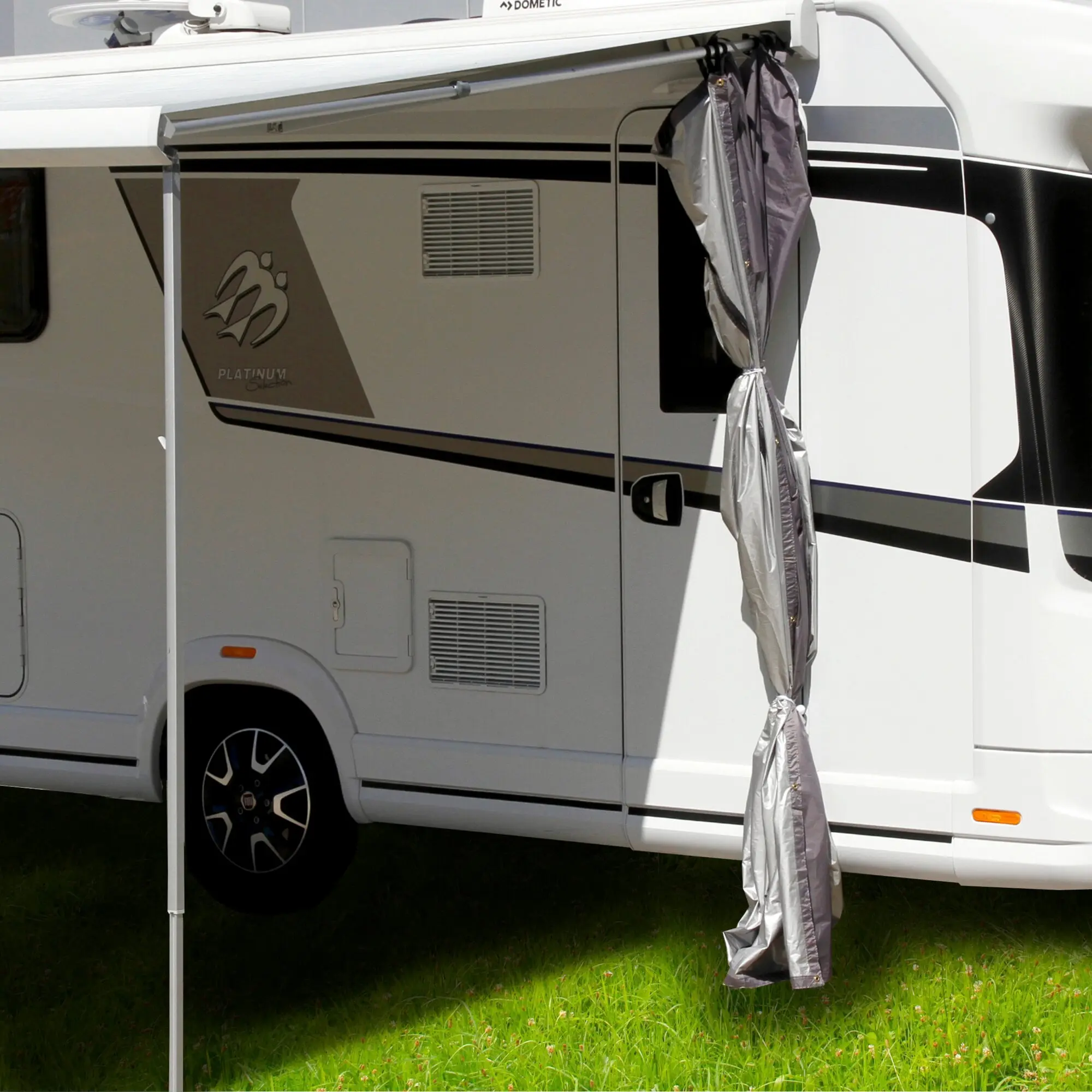 Erweitert den Schattenbereich und bietet zusätzlichen Schutz. Leicht, schnell montiert und flexibel links oder rechts an Markise oder Rafterstange zu befestigen. Das robuste Material ist winddicht, wasserabweisend, UV-beständig und langlebig.