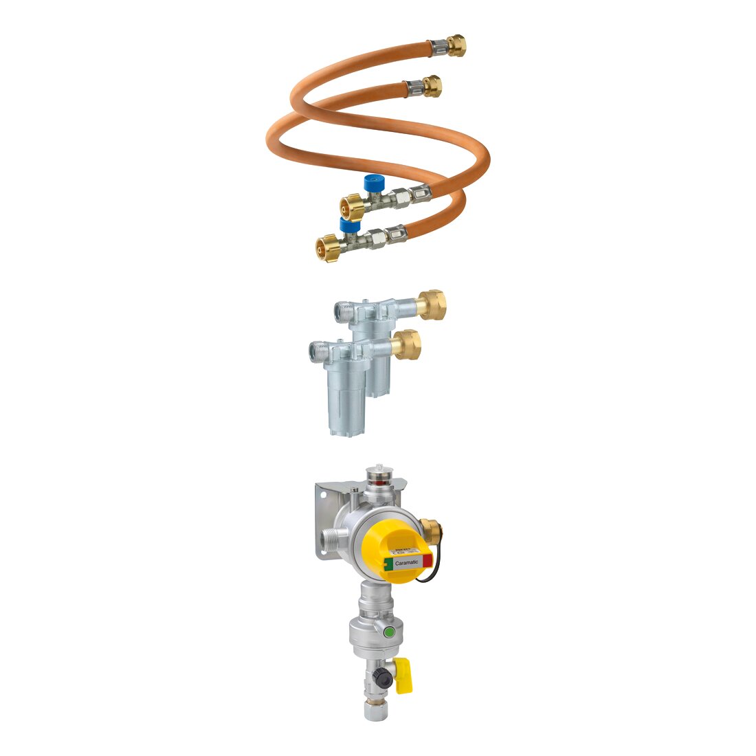 Sicherheits-Gasdruck-Regelanlage mit automatischem Umschaltventil zum Betrieb von Zweiflaschenanlagen in Caravans und Motorcaravans während der Fahrt, zum Anschluss an Gasflaschen mittels Hochdruck-Schlauchleitung, zur Druckregelung auf den Nenndruck des Gasgerätes.