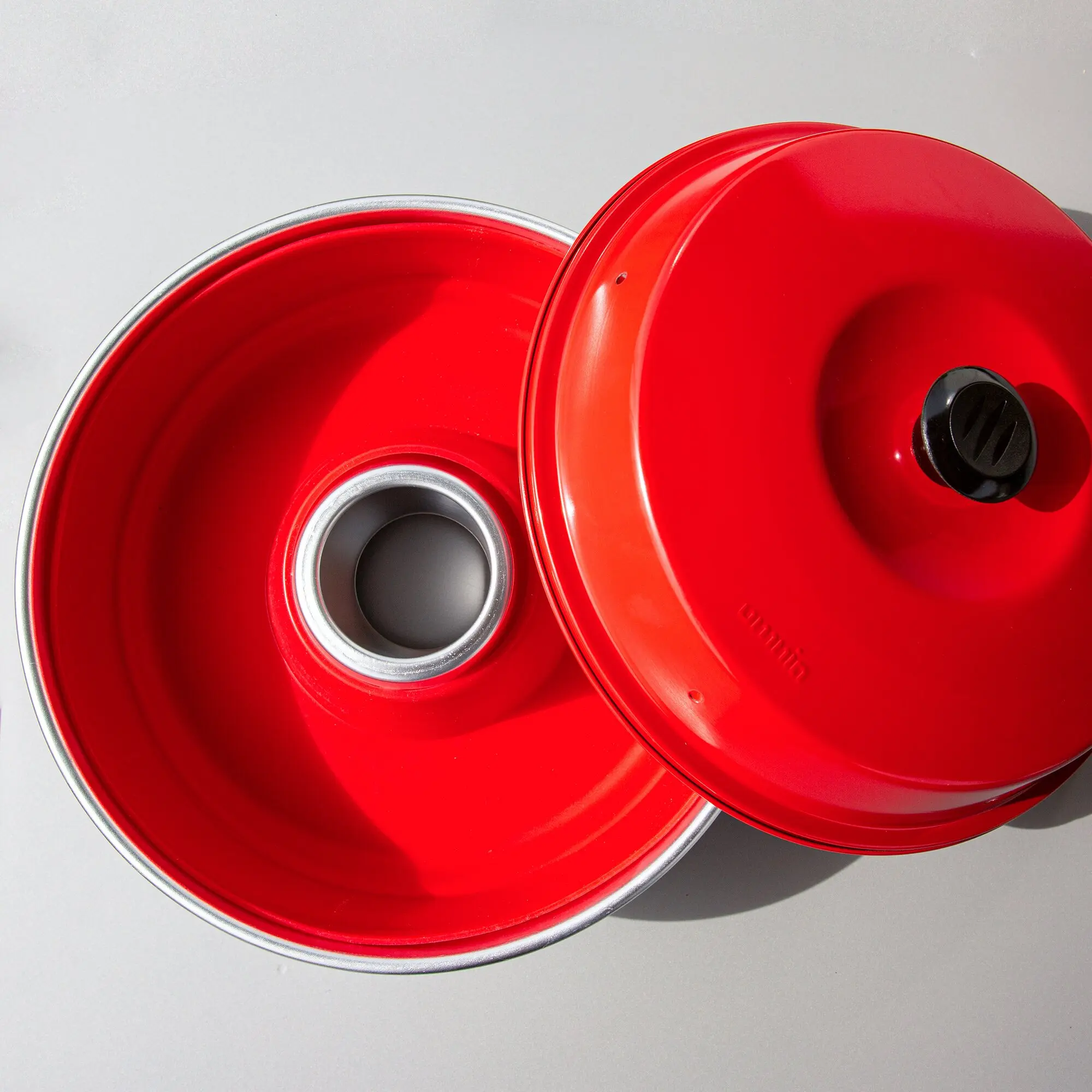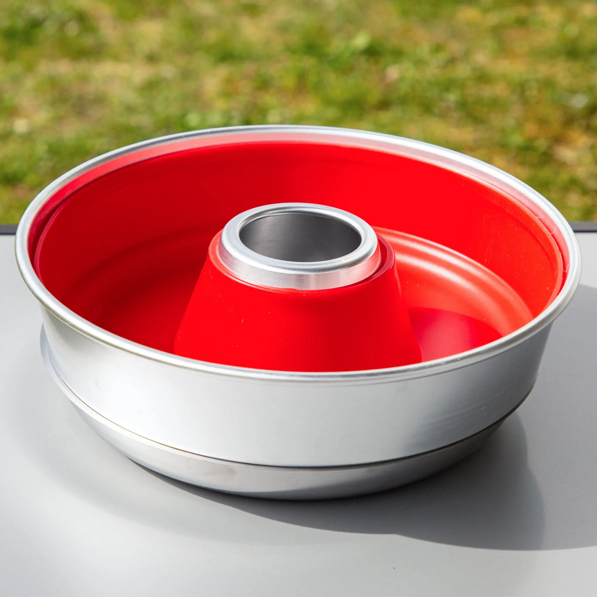 Zusammen mit dem Omnia Backofen kann die Backform für alle Herde (außer Induktionsherde) genutzt werden sowie über Gasflammen und offenem Feuer – unvergesslichen kulinarischen Abenteuern in der Natur steht damit nichts mehr im Wege. Mit der Omnia Silikonform macht das Backen auf Reisen jetzt noch mehr Freude! Die Silikonbackform ist in den Farben rot, türkis, grau, blau, gelb, rosa und violett (Maxi/3 l) erhältlich.