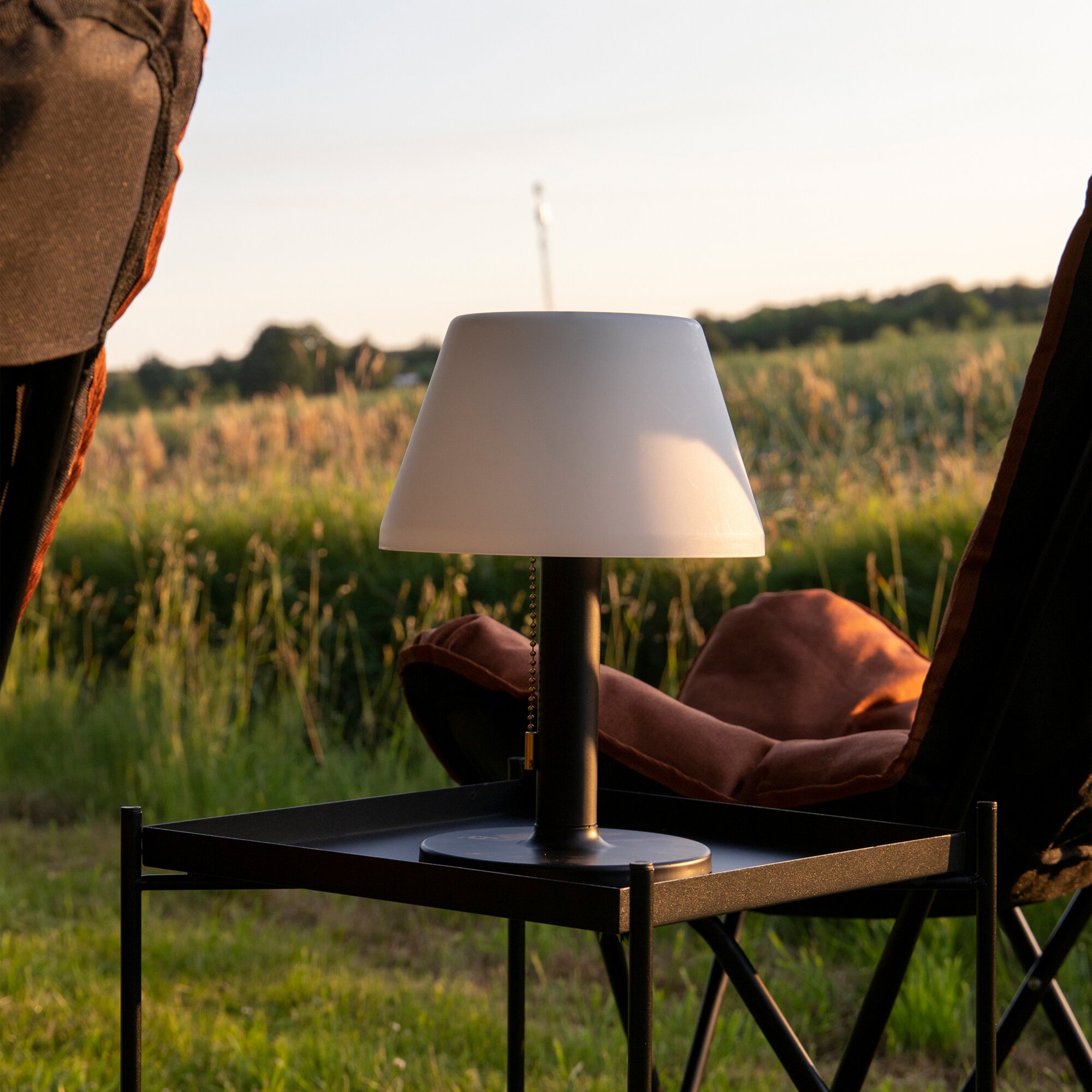 Die Solar-Tischlampe Ranger kombiniert modernes Design mit praktischer Funktion. Der robuste Stahlrahmen und der Kunststoff-Lampenschirm verleihen ihr einen markanten Industrie-Charme. Warmweißes LED-Licht sorgt für eine angenehme Atmosphäre, wahlweise in drei Helligkeitsstufen. Mit bis zu 25 Stunden Leuchtdauer bietet die Lampe langanhaltendes Licht – ideal für Garten, Terrasse oder Camping. Der integrierte Li-Ionen-Akku lässt sich per Solarpanel oder USB-Kabel aufladen. Eine goldene Zugschnur dient als stilvoller Schalter.